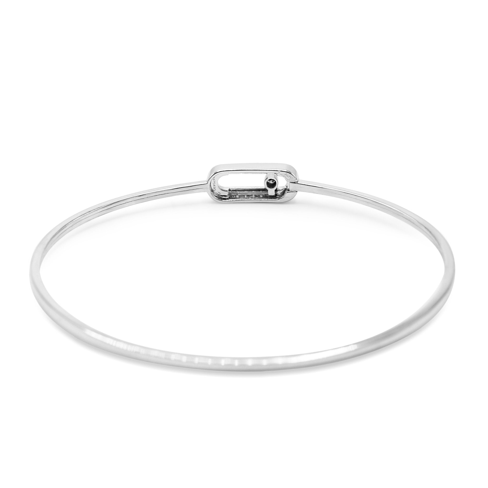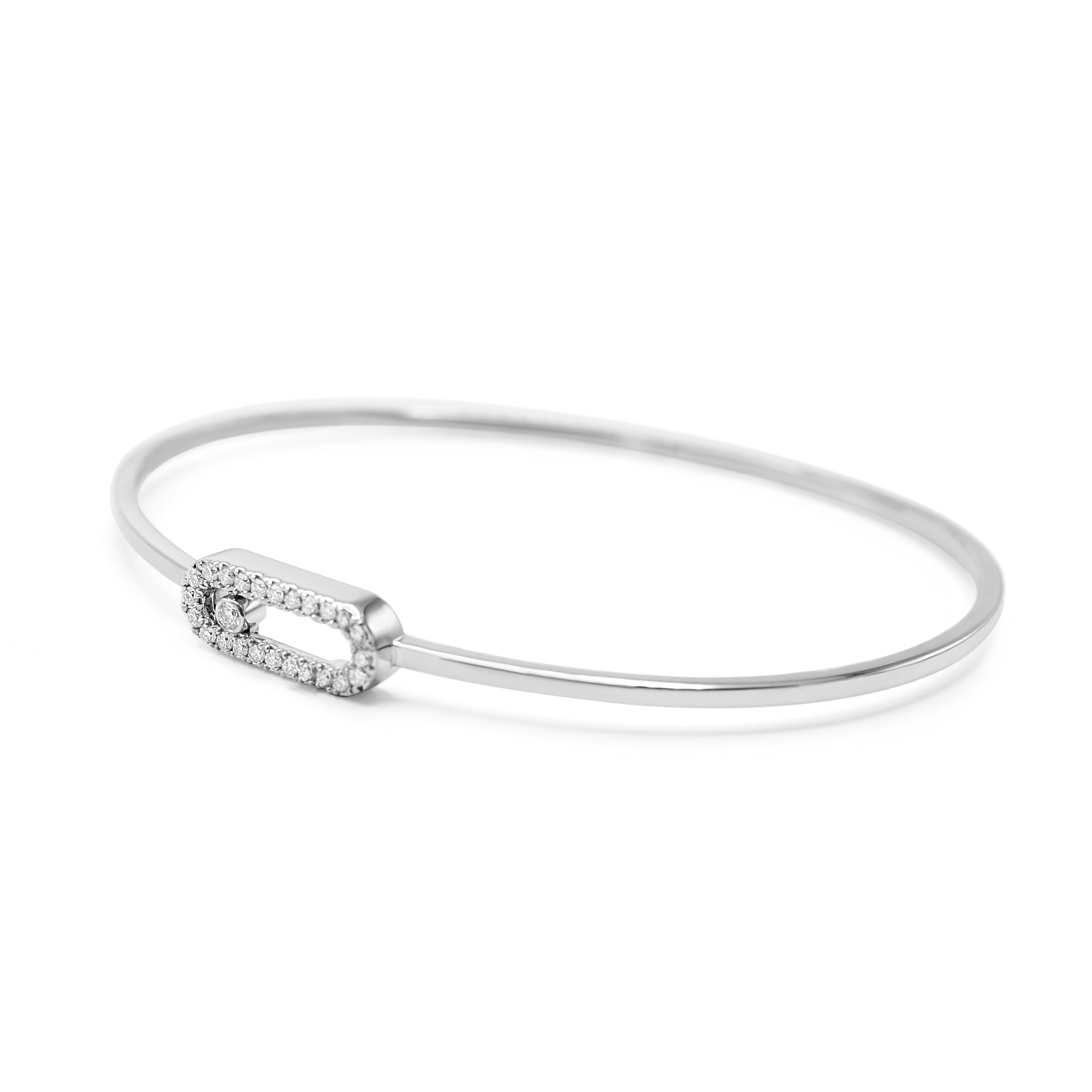 Elevate your wrist game with the Messika Diamond Move Uno Bangle. This stunning piece features a dazzling diamond center stone, expertly crafted by hand for a unique, luxurious look. With its sleek and modern design, this bangle is the perfect addition to any upscale wardrobe. Make a statement and radiate elegance with this exclusive bangle.