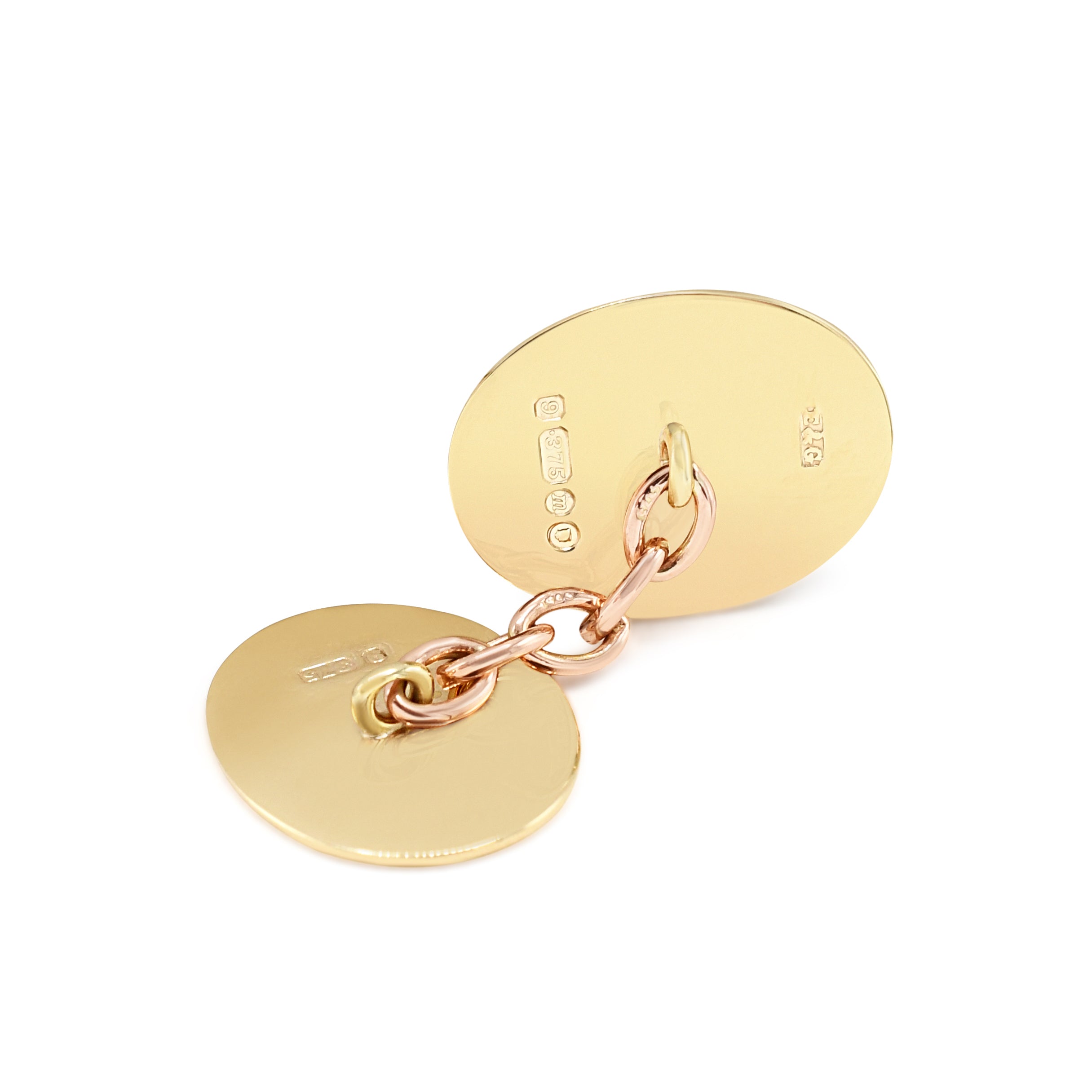 These pre-owned cufflinks are a perfect marriage of classic design and quality craftsmanship. Made from 9ct Gold, each piece is meticulously handcrafted to ensure a flawless finish. The oval shape adds a touch of symmetry and balance to the design, while the intricate chainlink detail adds a touch of texture and depth.
