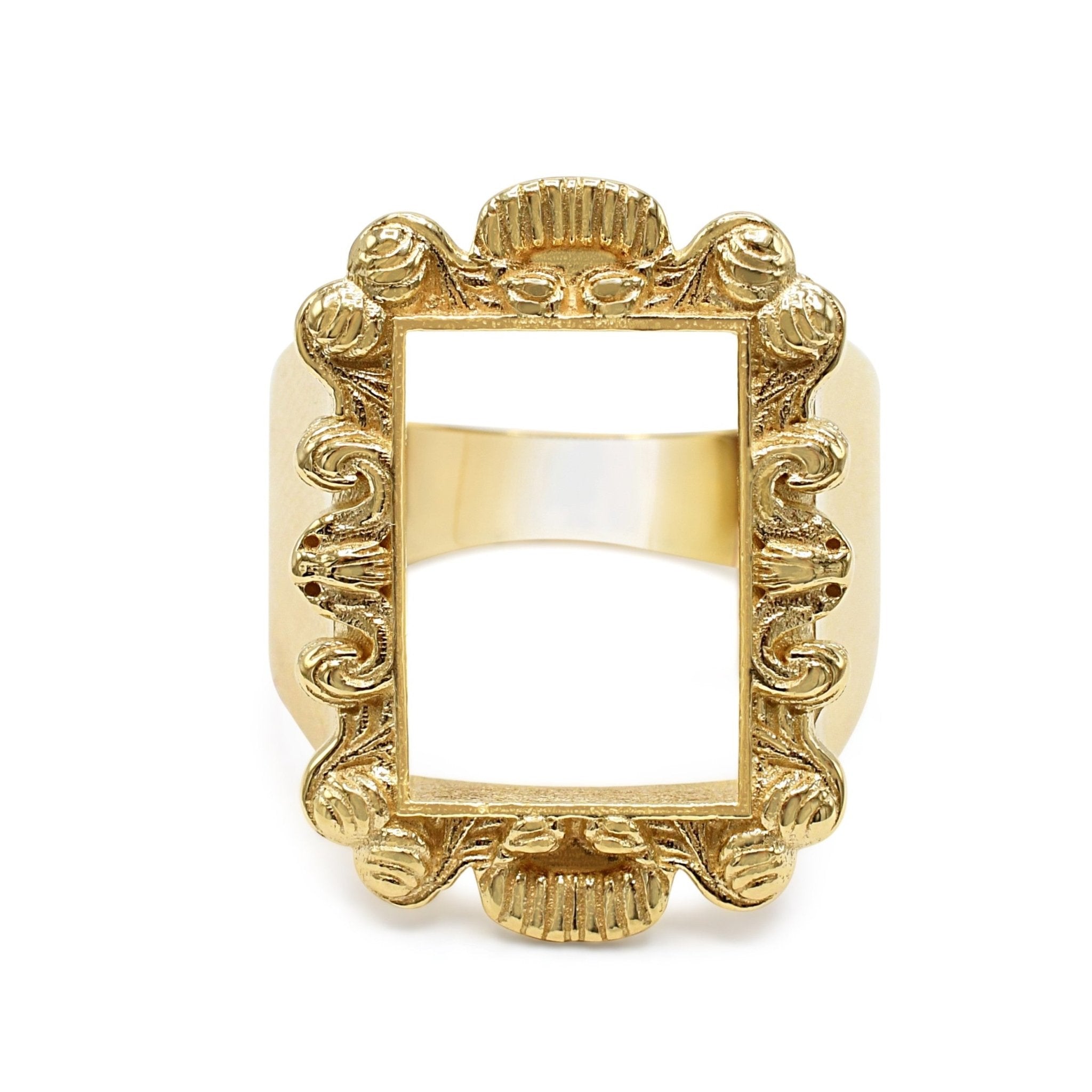 Designed specifically for women, this pre-owned ring is delicately set in a unique frame shape, measuring 26 x 19mm - a statement piece that is sure to catch the eyes of onlookers. The weight of 13.53g adds a substantial feel to the ring, giving it a solid and sturdy appearance.
