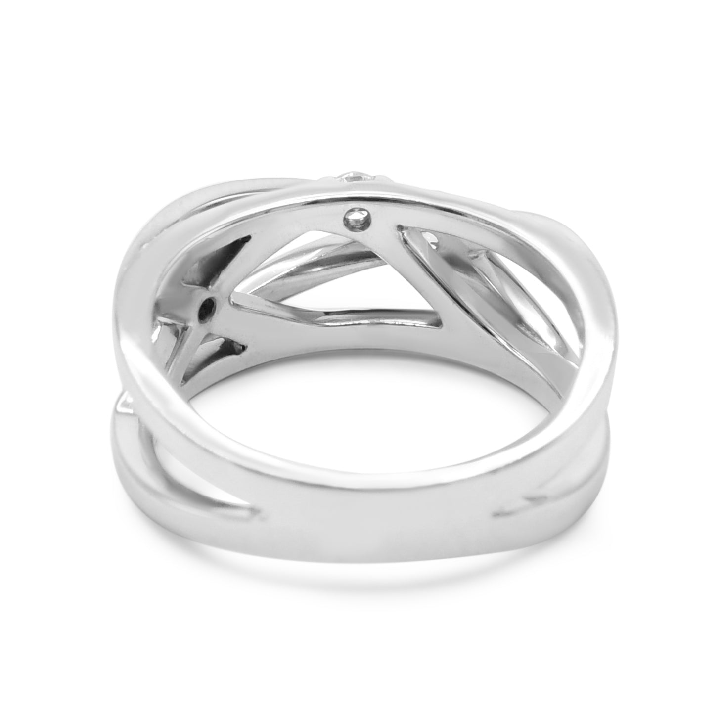 Crafted from 18ct White Gold, this pre-owned ring boasts exquisite craftsmanship and attention to detail. The band tapers from 8.1mm to 4mm, giving the ring a unique and eye-catching shape. With a weight of 7.10g, this ring is lightweight and comfortable to wear, making it the perfect accessory for any occasion.