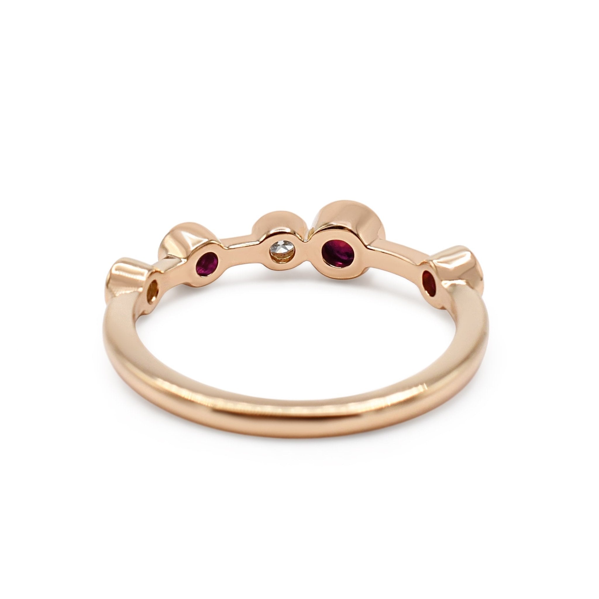 The design of this pre-owned ring is anything but ordinary. The half eternity design features a beautiful combination of sparkling Diamonds and rich Rubies, totalling 0.55ct in weight. These Gemstones are expertly placed in a mesmerizing raindrop pattern, reminiscent of the gentle sound of rain on a warm summer day. The Diamonds are carefully hand-selected for their exceptional sparkle and the Rubies are of the finest quality, creating a breath-taking contrast of colours.