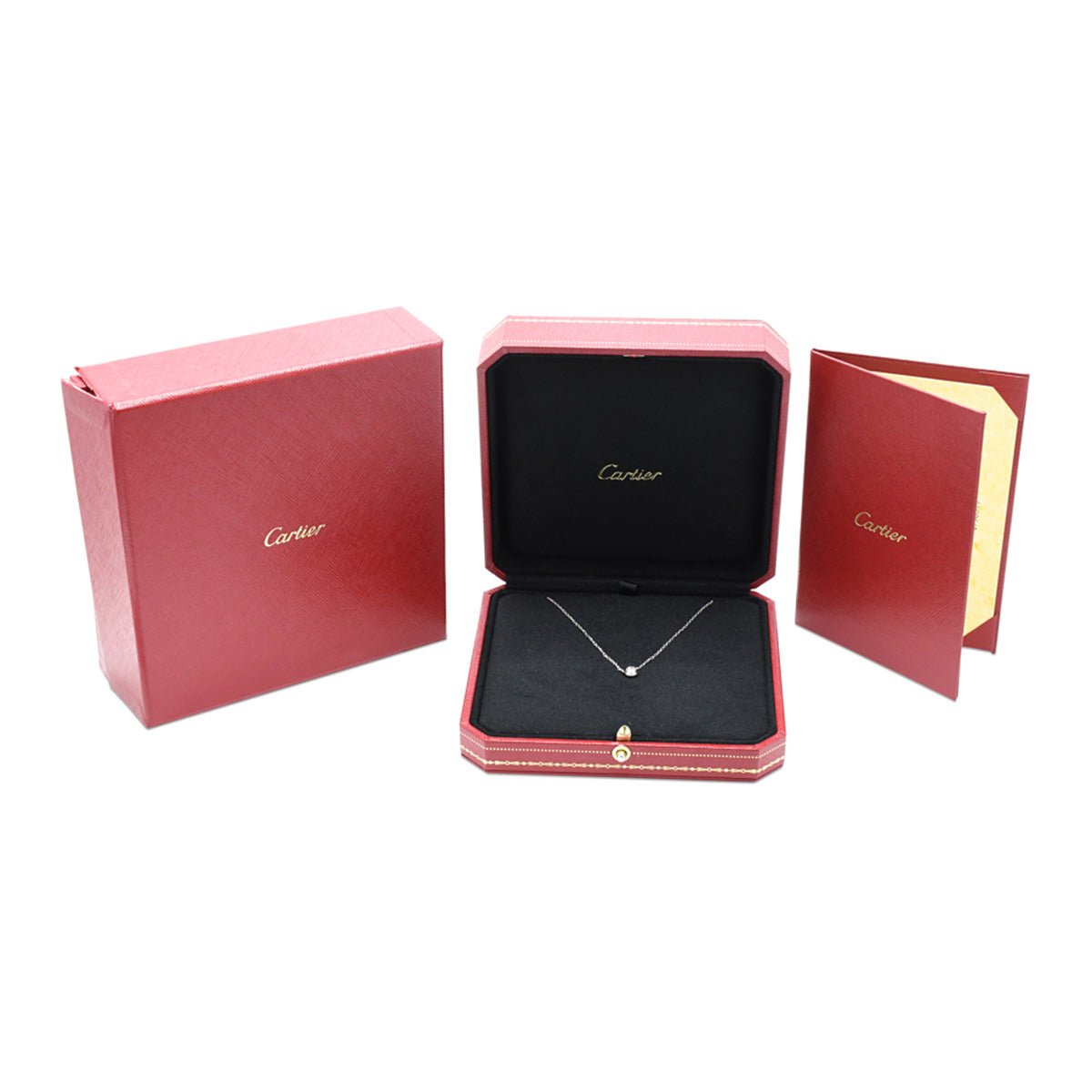 Not only does this pre-owned necklace come in the iconic Cartier Box, but it also includes an Original Purchase Receipt and Certificate, ensuring the authenticity of your purchase. It's the perfect addition to any jewellery collection, a piece that will be treasured for years to come. The Round Brilliant cut of the Diamond adds a timeless charm, making it a perfect match for any outfit, from a classic little black dress to a casual jeans and t-shirt look.