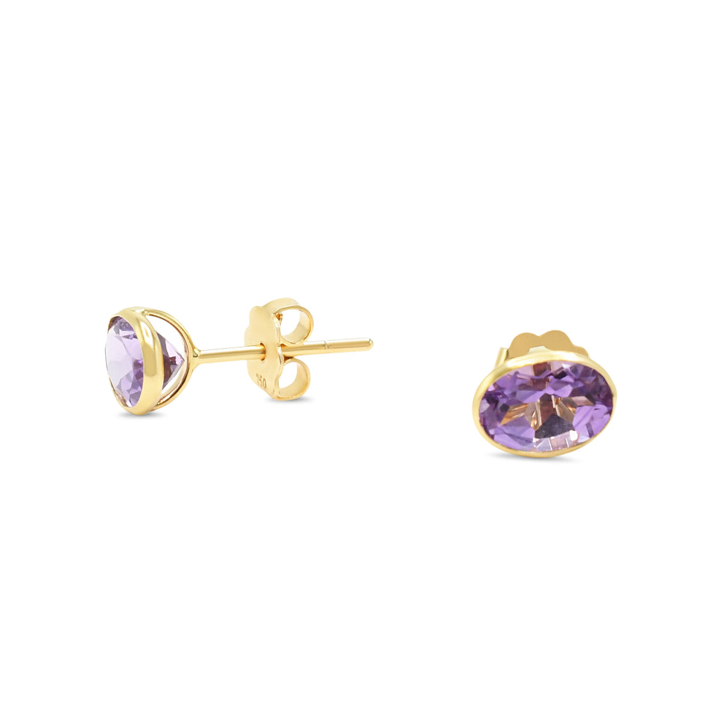 Faceted Oval Amethyst 1.46ct Earrings - 18ct Yellow Gold