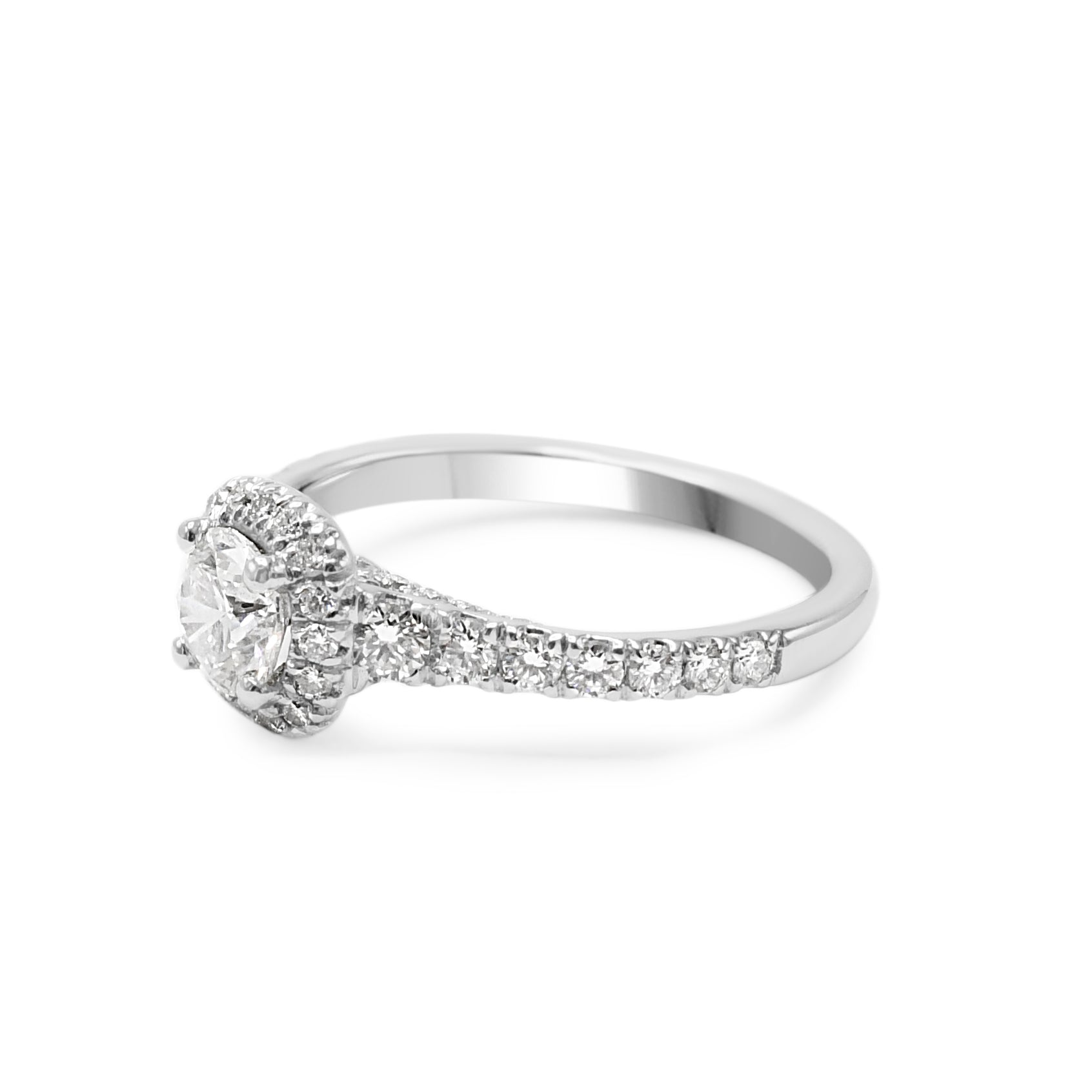 GIA Certificated Halo Set Brilliant Cut Diamond Ring - Platinum