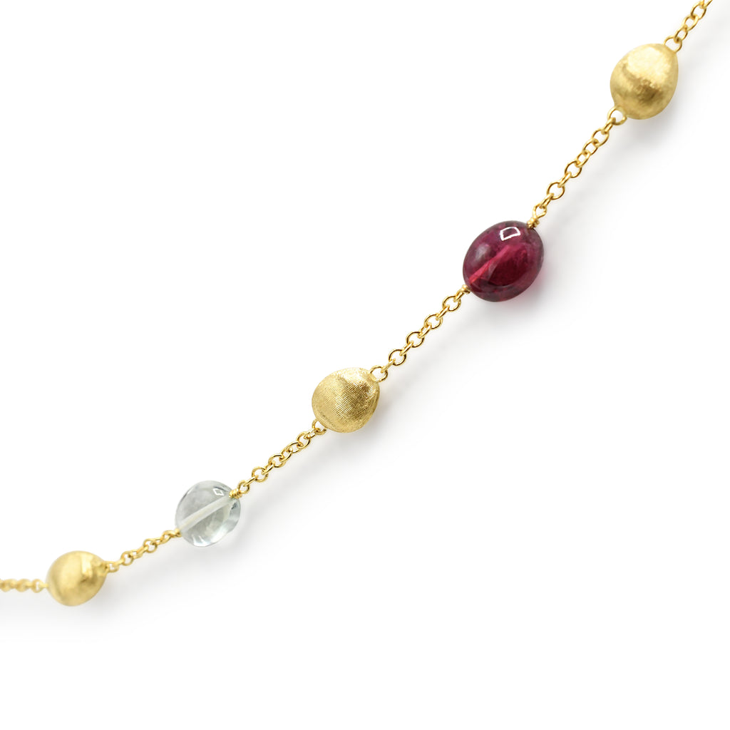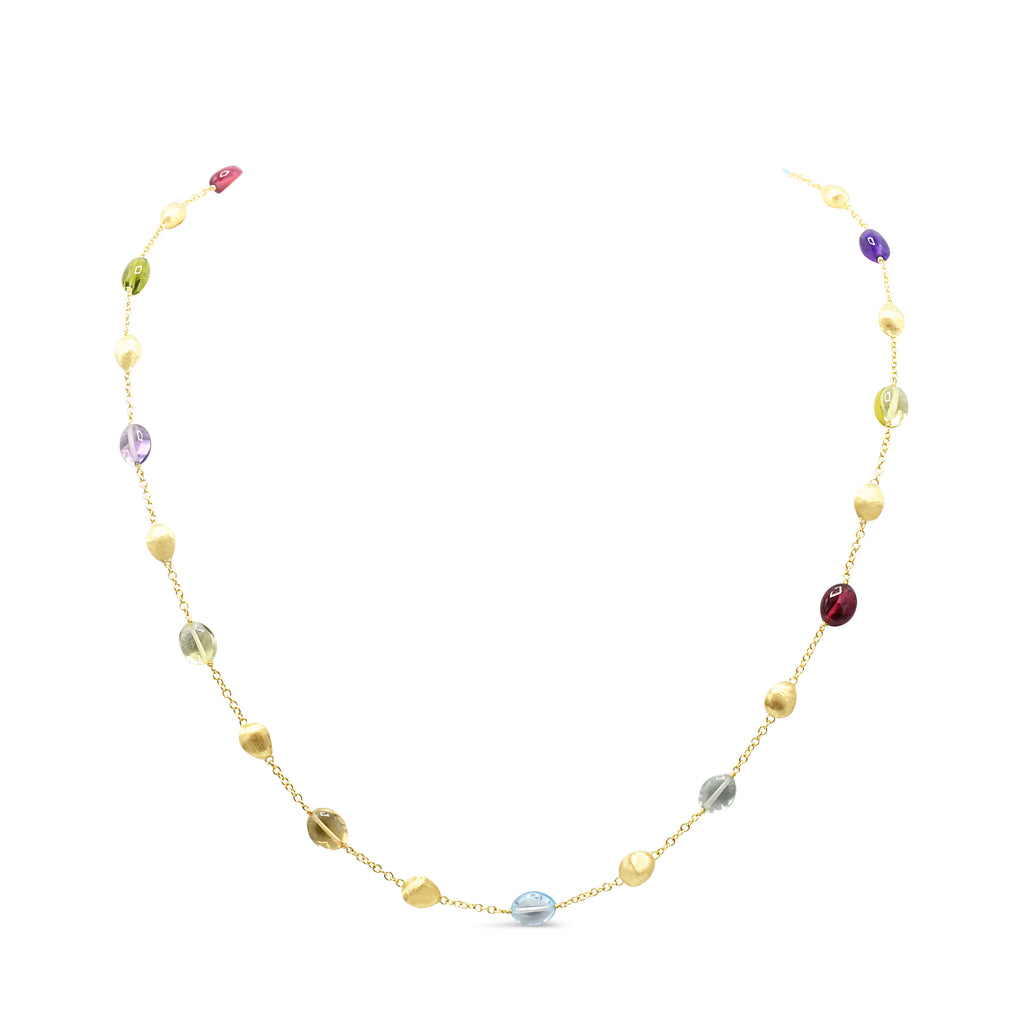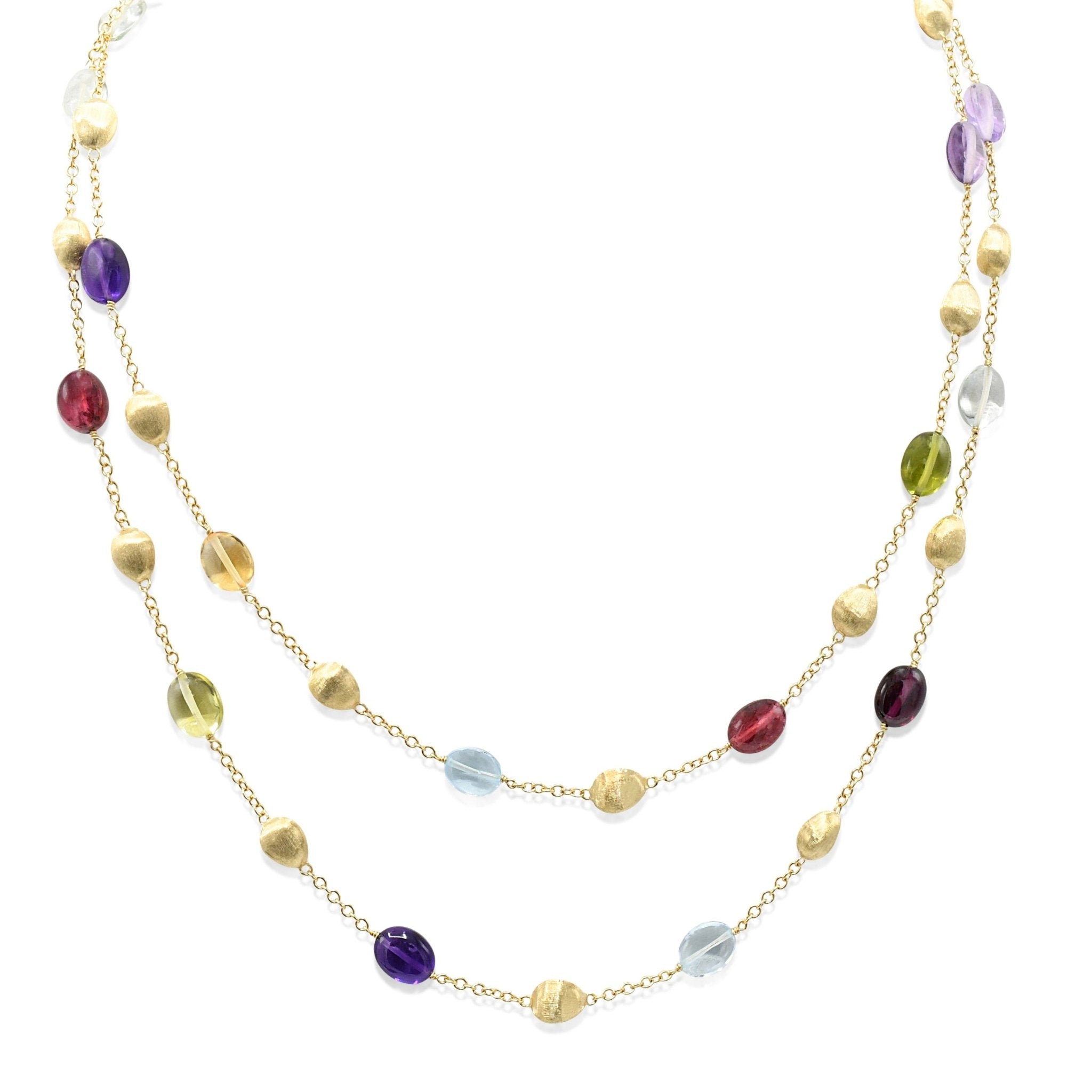 Introducing this stunning second hand Marco Bicego Multi Gem Long Necklace, perfect for the modern, sophisticated woman. This exquisite necklace is a true work of art, crafted with precision and attention to detail by the esteemed brand, Marco Bicego.