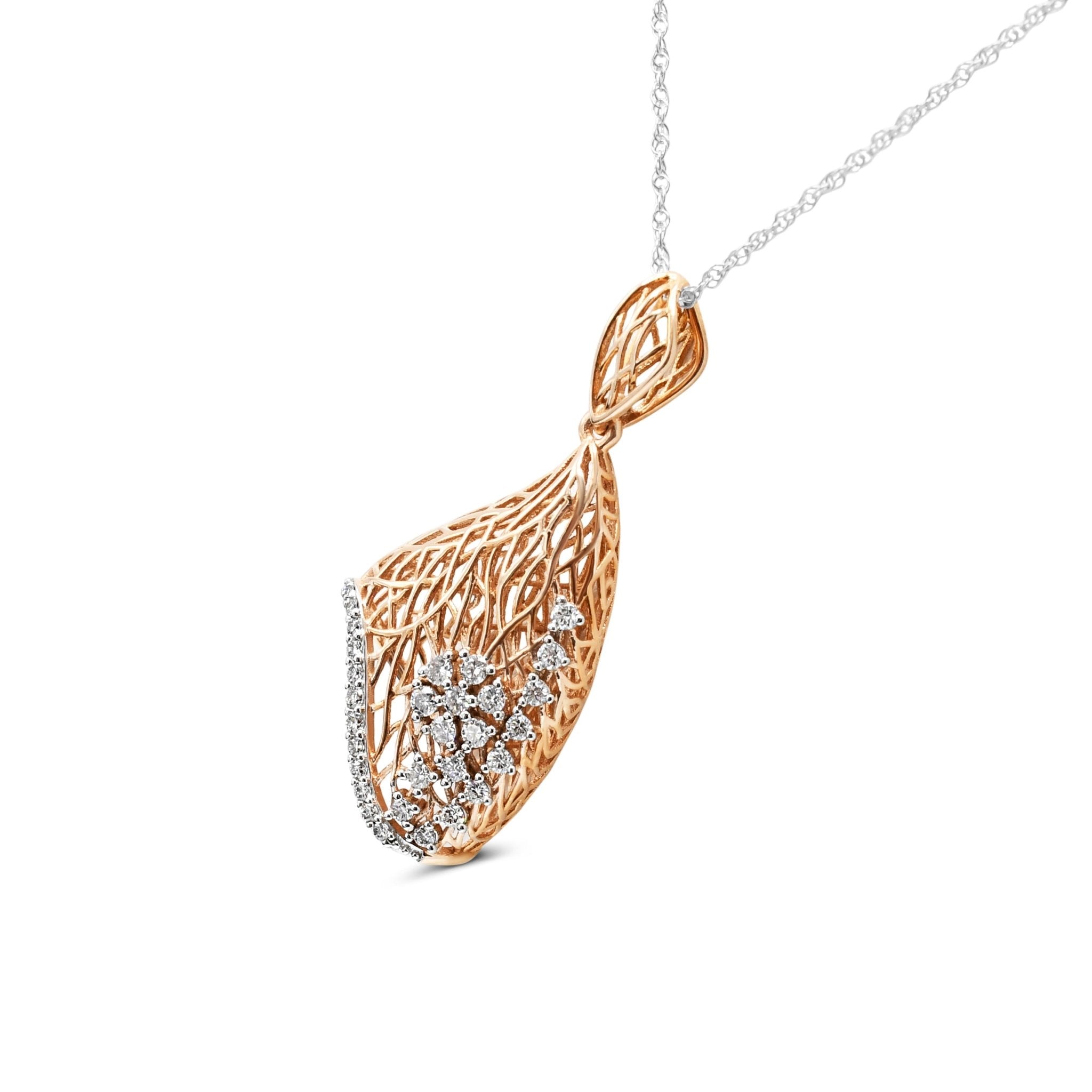 Pierced Brilliant Cut Diamond Set Drop Pendant Necklace - Rose / White