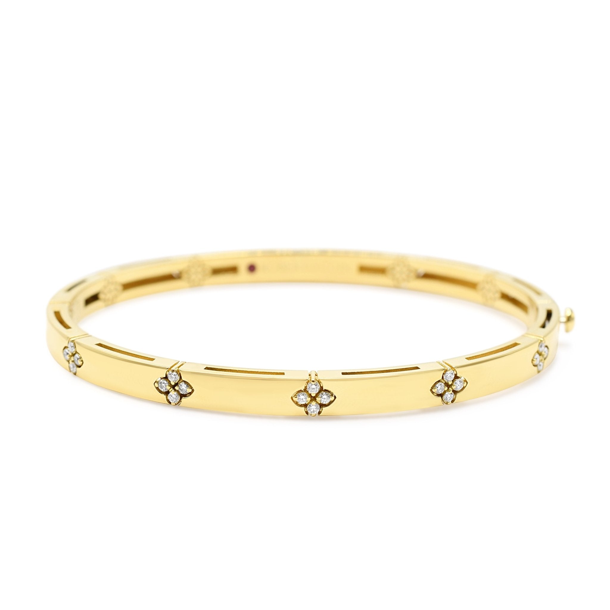 Step into the enchanting city of Verona, where the air is filled with whispers of love and the streets are adorned with timeless beauty. This is the inspiration behind this second hand Roberto Coin Love in Verona Diamond Bangle.