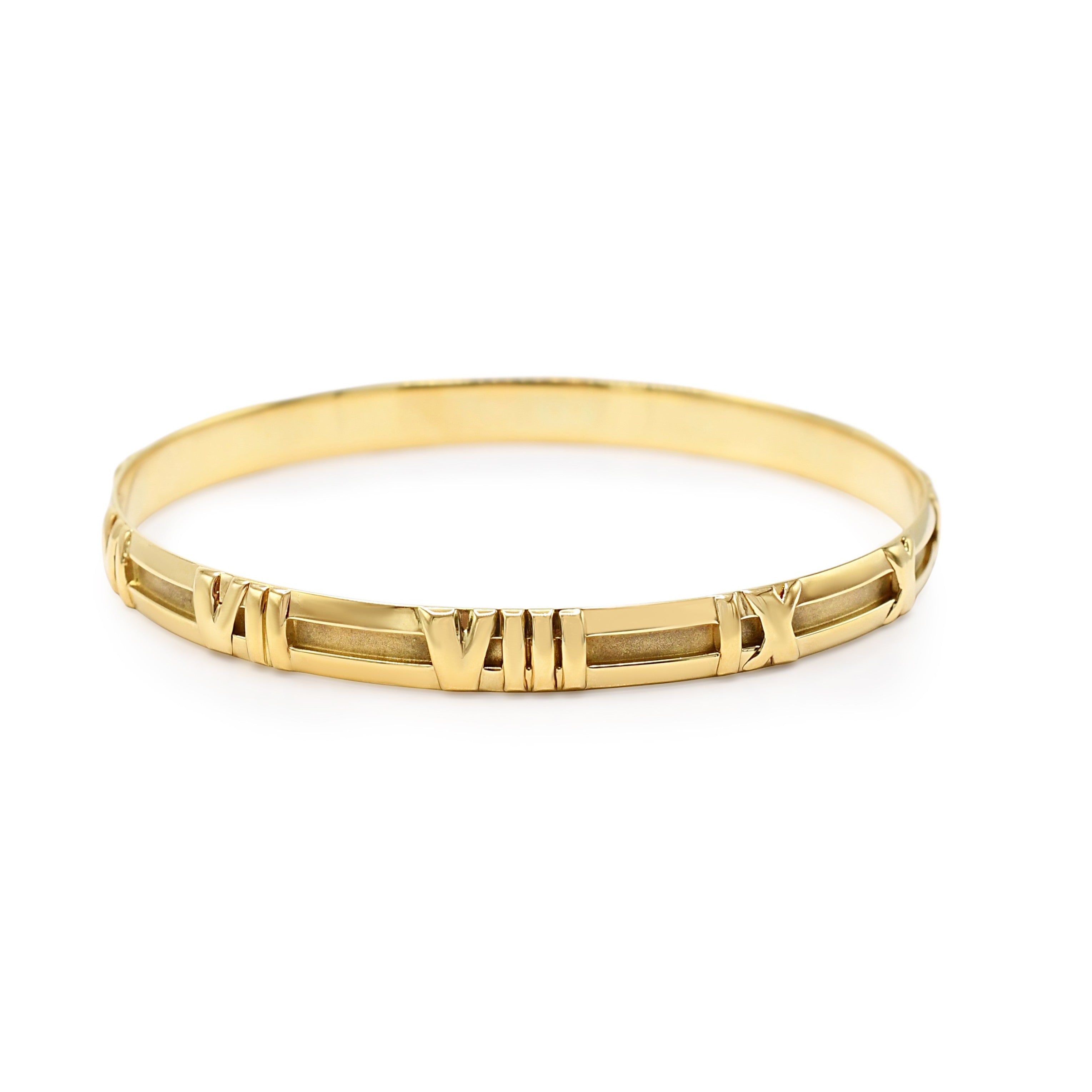 Step into the world of luxury and elegance with this second hand Tiffany Atlas Bangle in 18ct Yellow Gold. Designed by the renowned brand Tiffany & Co, this bangle is a true masterpiece that embodies sophistication and timeless beauty.
