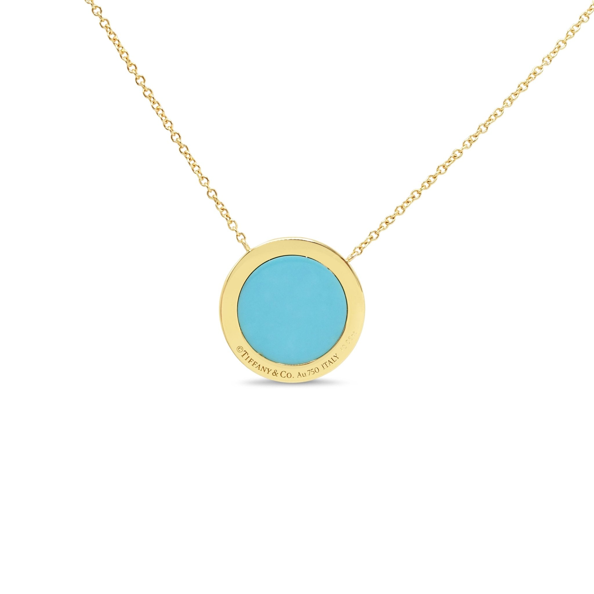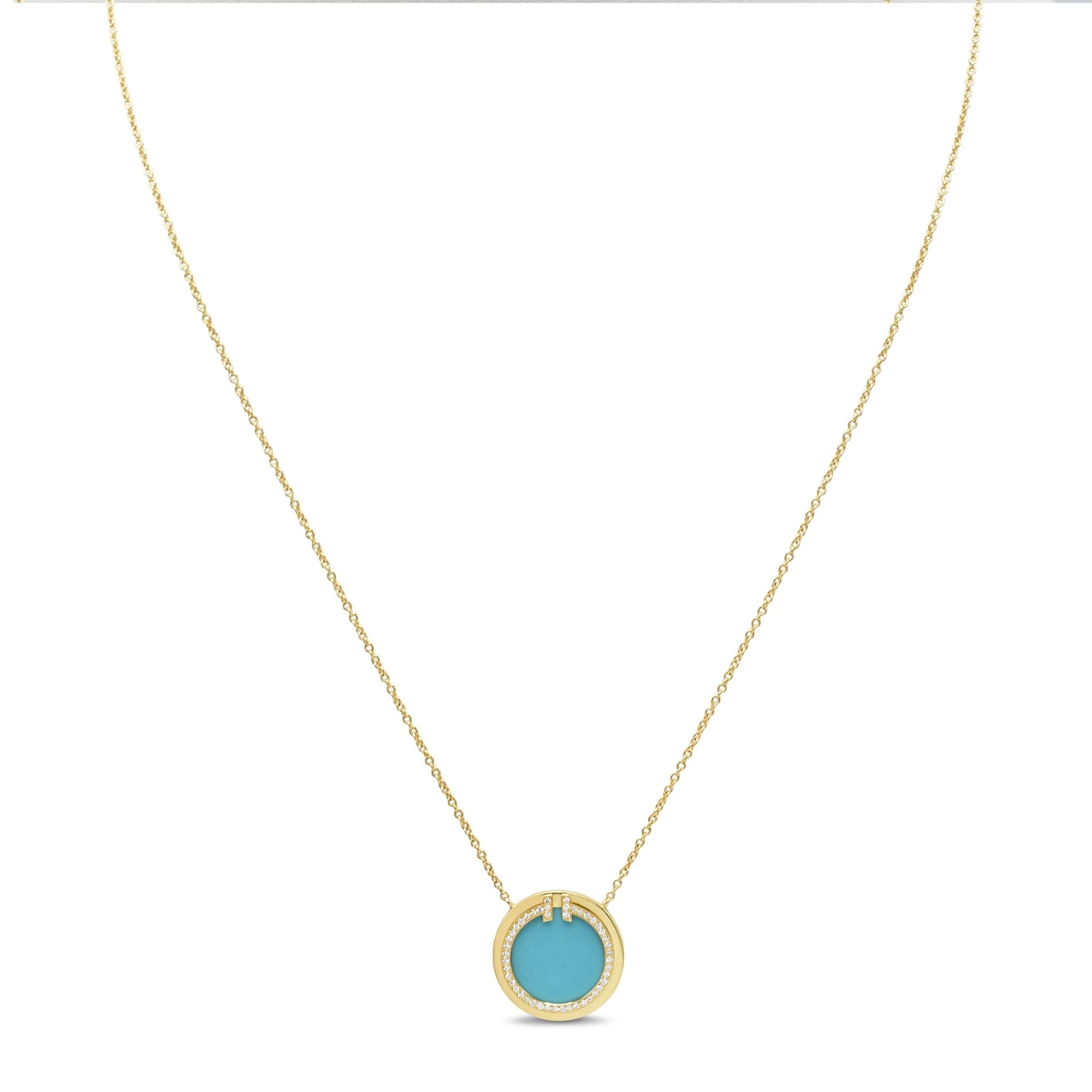 Tiffany T Diamond & Turquoise Circle Pendant Necklace-18ct Yellow Gold