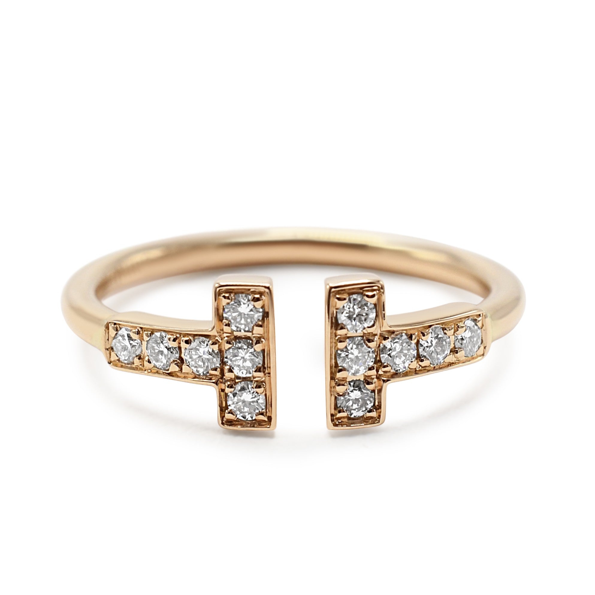 Introducing this stunning second hand Tiffany T Diamond Wire Ring in the mesmerizing hue of Rose. This luxurious piece from the renowned brand, Tiffany & Co, is the perfect addition to any woman's collection. Crafted with precision and care, this ring is designed to make a statement and leave a lasting impression.