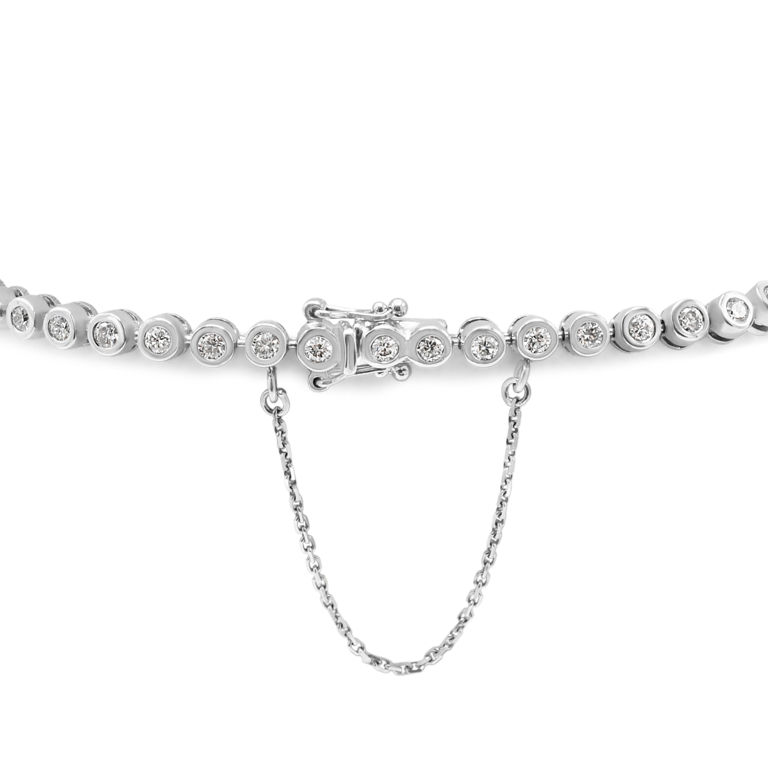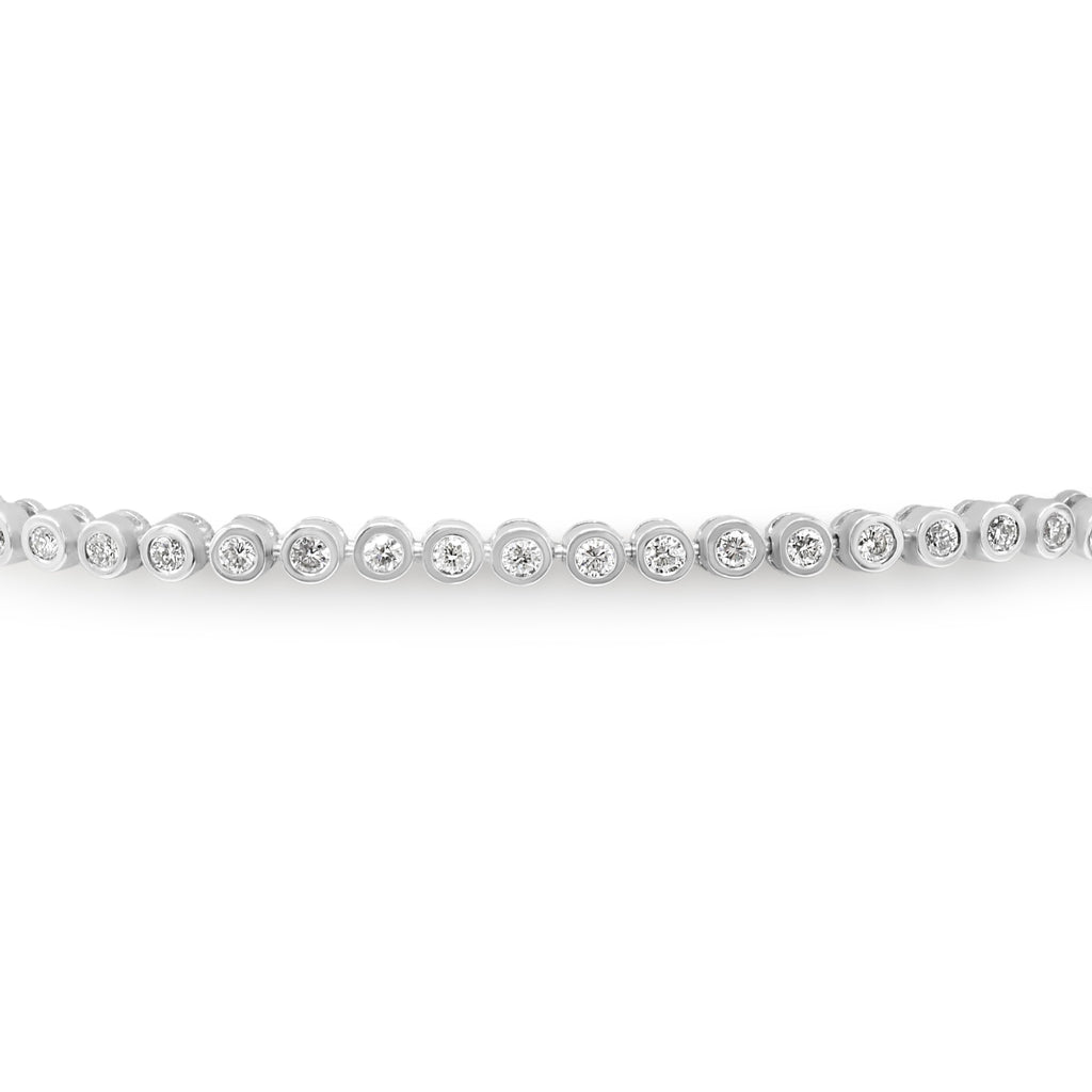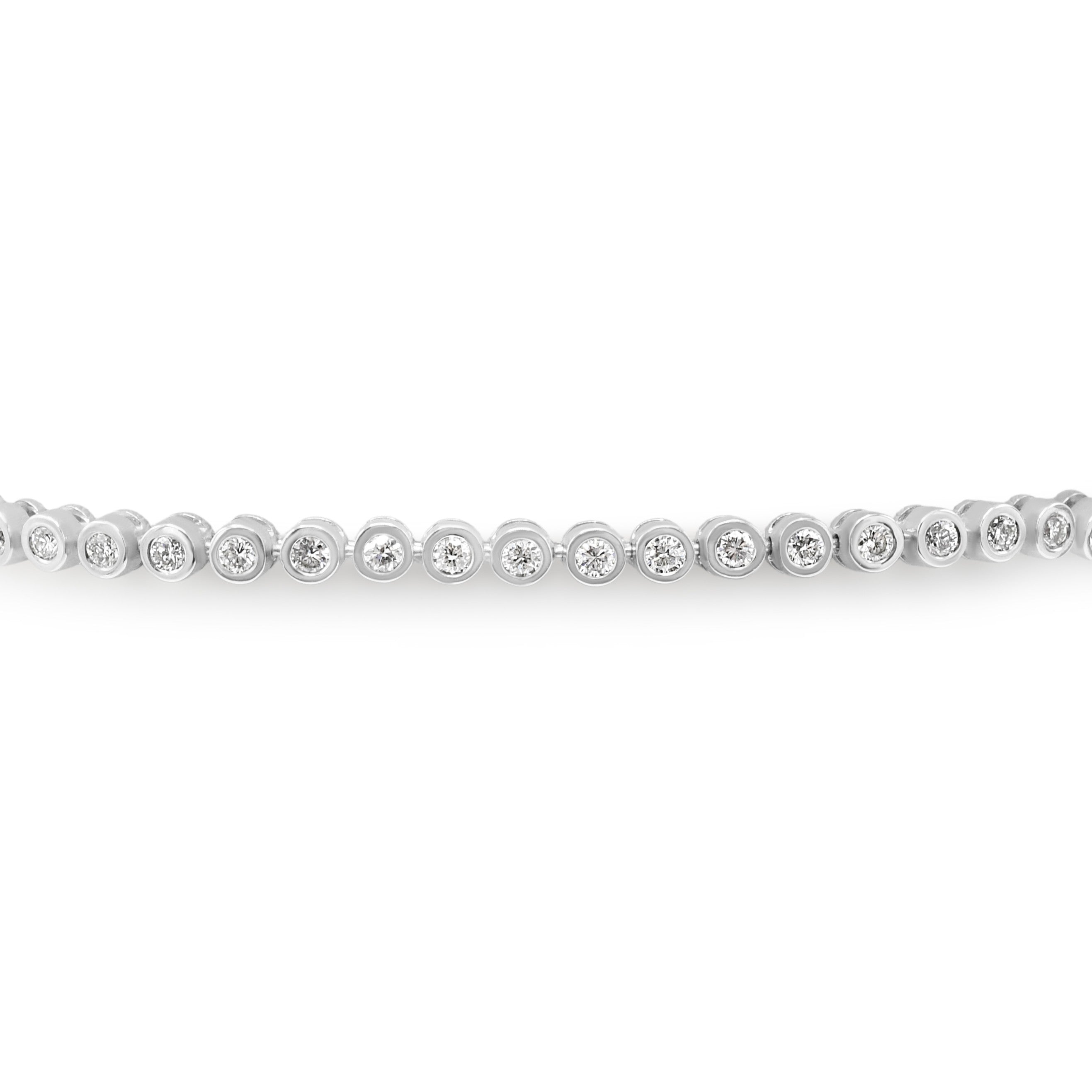 Crafted with the finest materials and impeccable attention to detail, this pre-owned bracelet is a true work of art. It features over 2.50 carats of sparkling Round Brilliant Cut Diamonds, carefully selected for their exceptional quality and brilliance. The Diamonds are set in a rubover style, creating a seamless and sleek look that allows each Stone to shine to its full potential. With a colour range of H-I and a clarity range of VS1-SI1, these Diamonds are guaranteed to steal the show wherever you go.