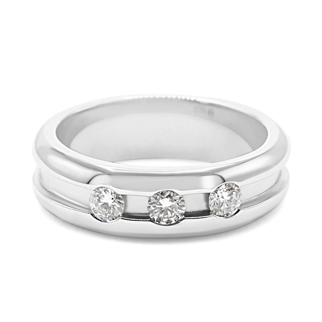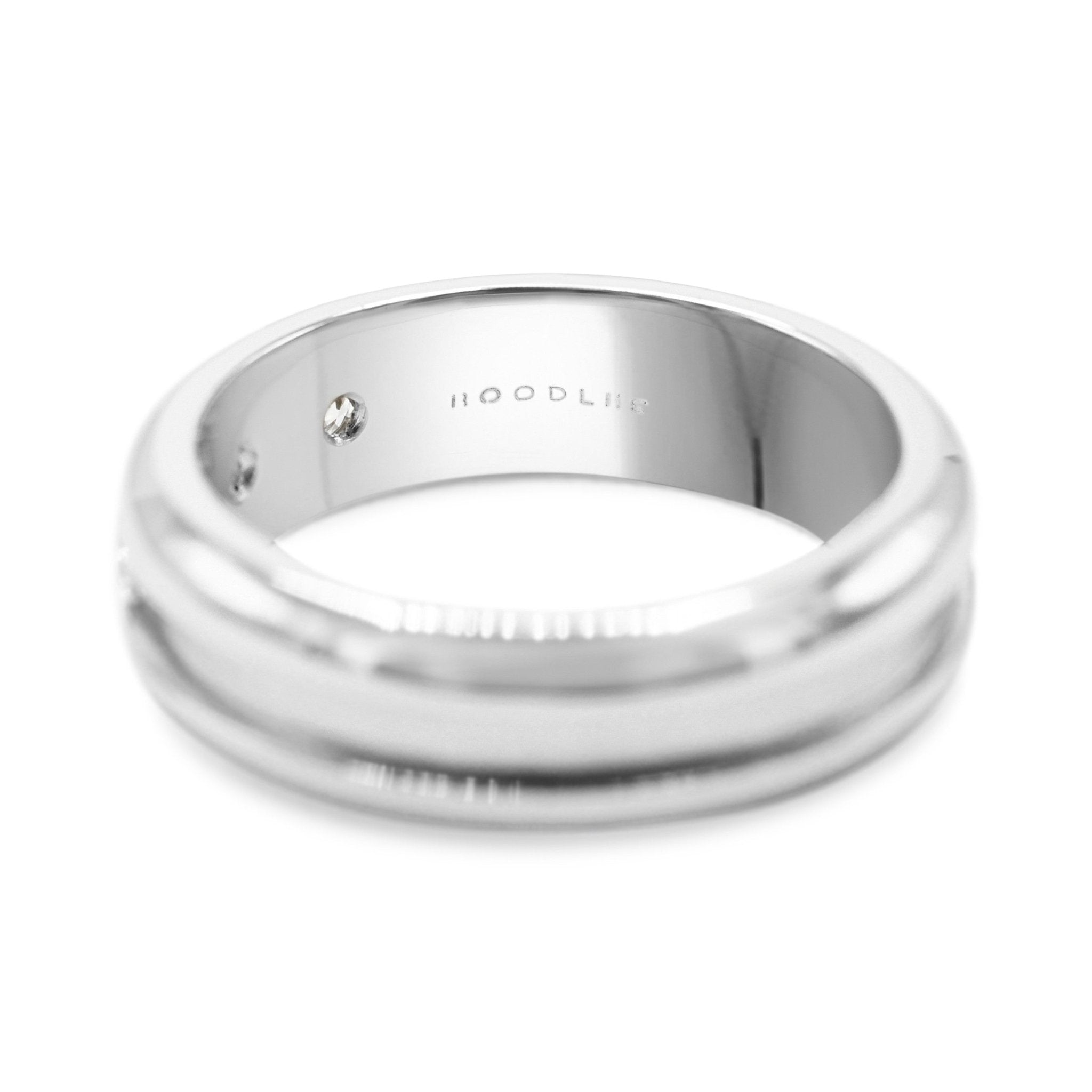 This stunning Boodles three-stone diamond band ring is a timeless treasure from 2002. Crafted in luxurious platinum, it features a sparkling total diamond weight of 0.29cts across its elegant design.