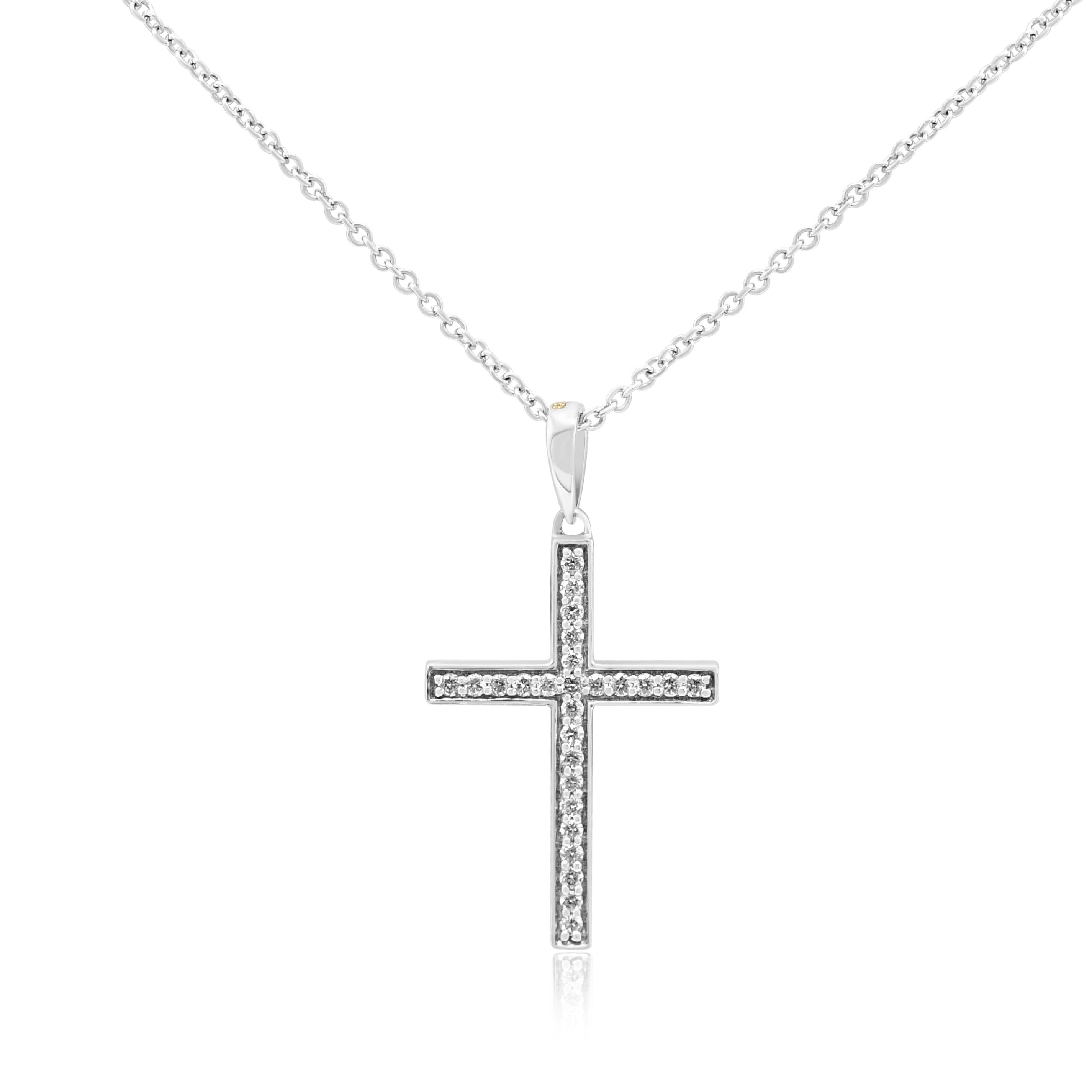Made from the finest 18ct White Gold, this brand new necklace boasts a brilliant Diamond weight of 0.12ct. Each Diamond is carefully hand-selected for its exceptional quality and masterfully set within the cross pendant, creating a mesmerizing sparkle with every movement.