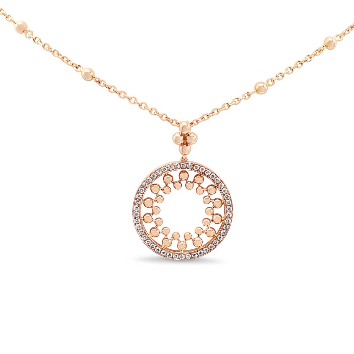 This exquisite Boodles Circus pendant necklace showcases a captivating diamond bead design crafted in luxurious 18ct rose gold. Featuring approximately 0.83ct of diamonds, the piece combines timeless elegance with contemporary artistry.