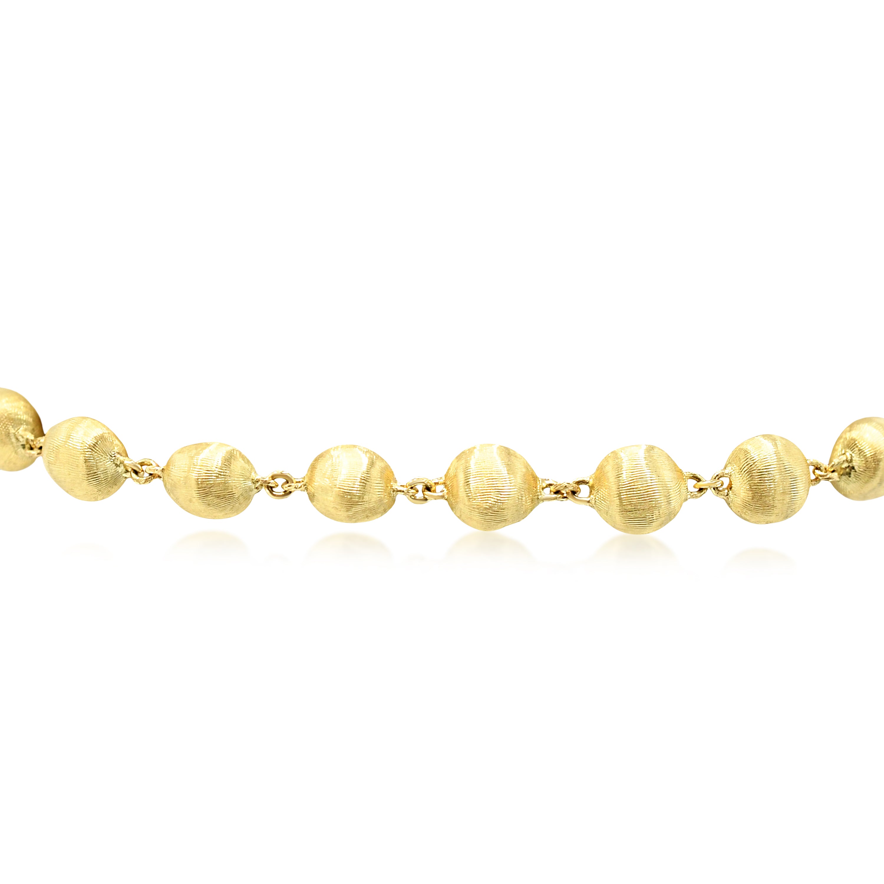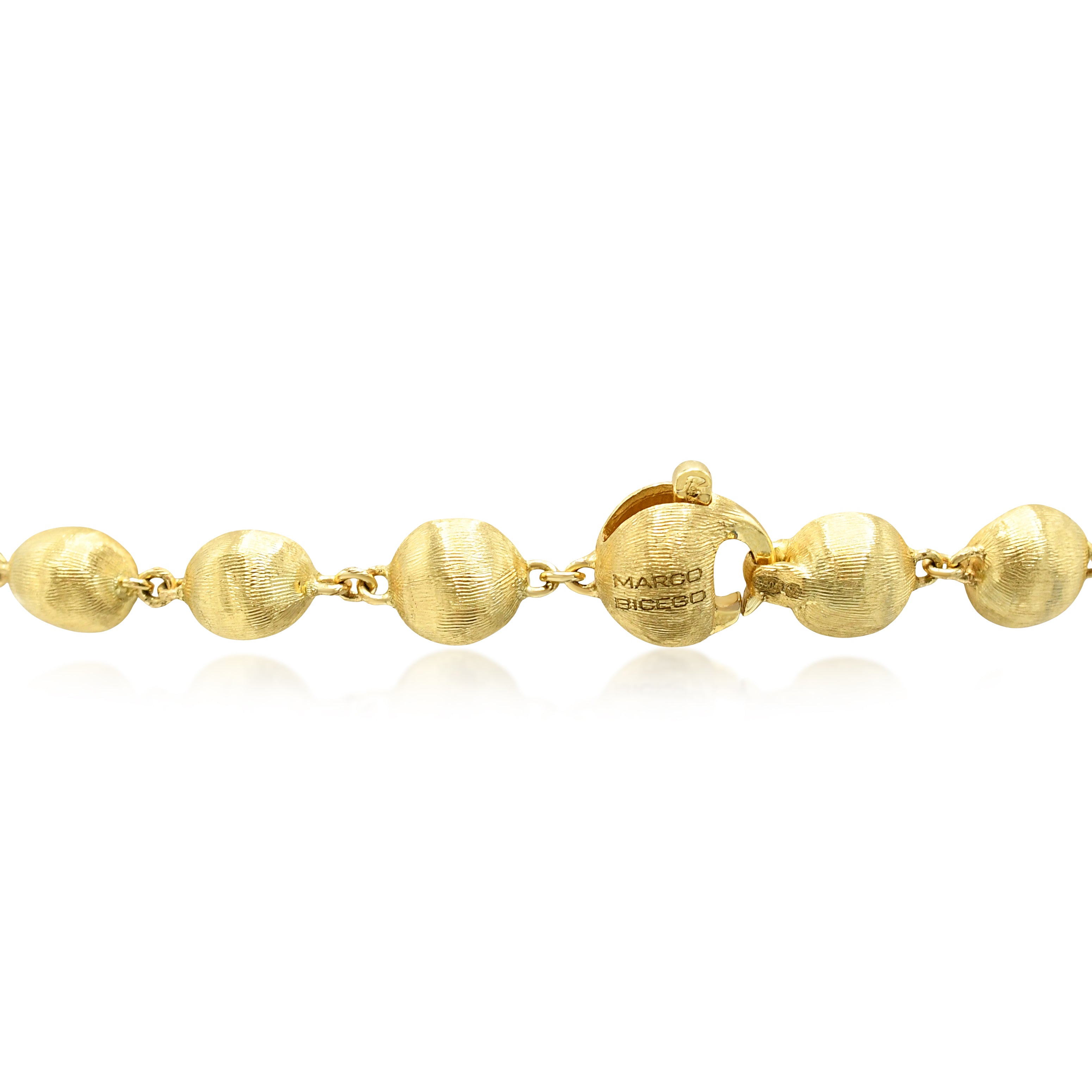 Marco Bicego's Africa bracelet exemplifies refined elegance in 18ct yellow gold. This exquisite second-hand piece features delicately crafted beads measuring 5.9mm, strung to a graceful 7.5" length—ideal for everyday sophistication or special occasions.