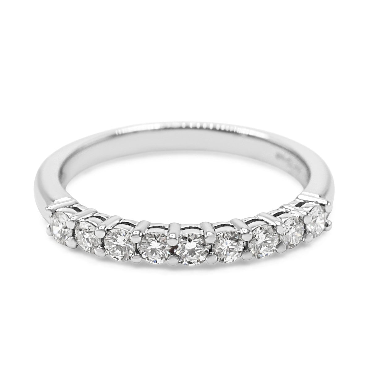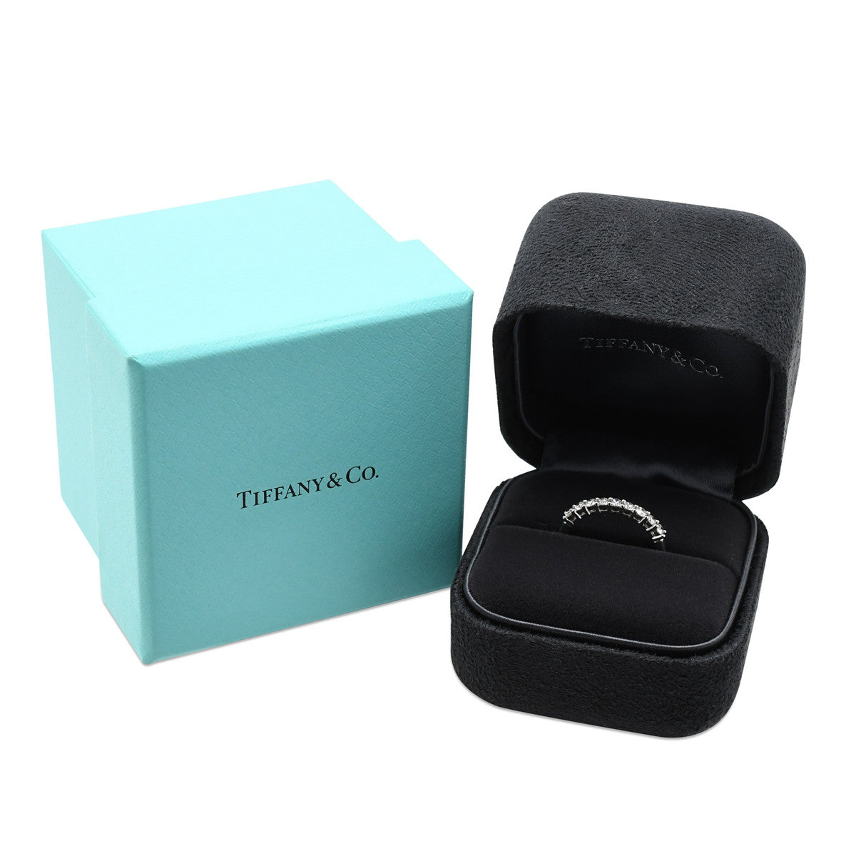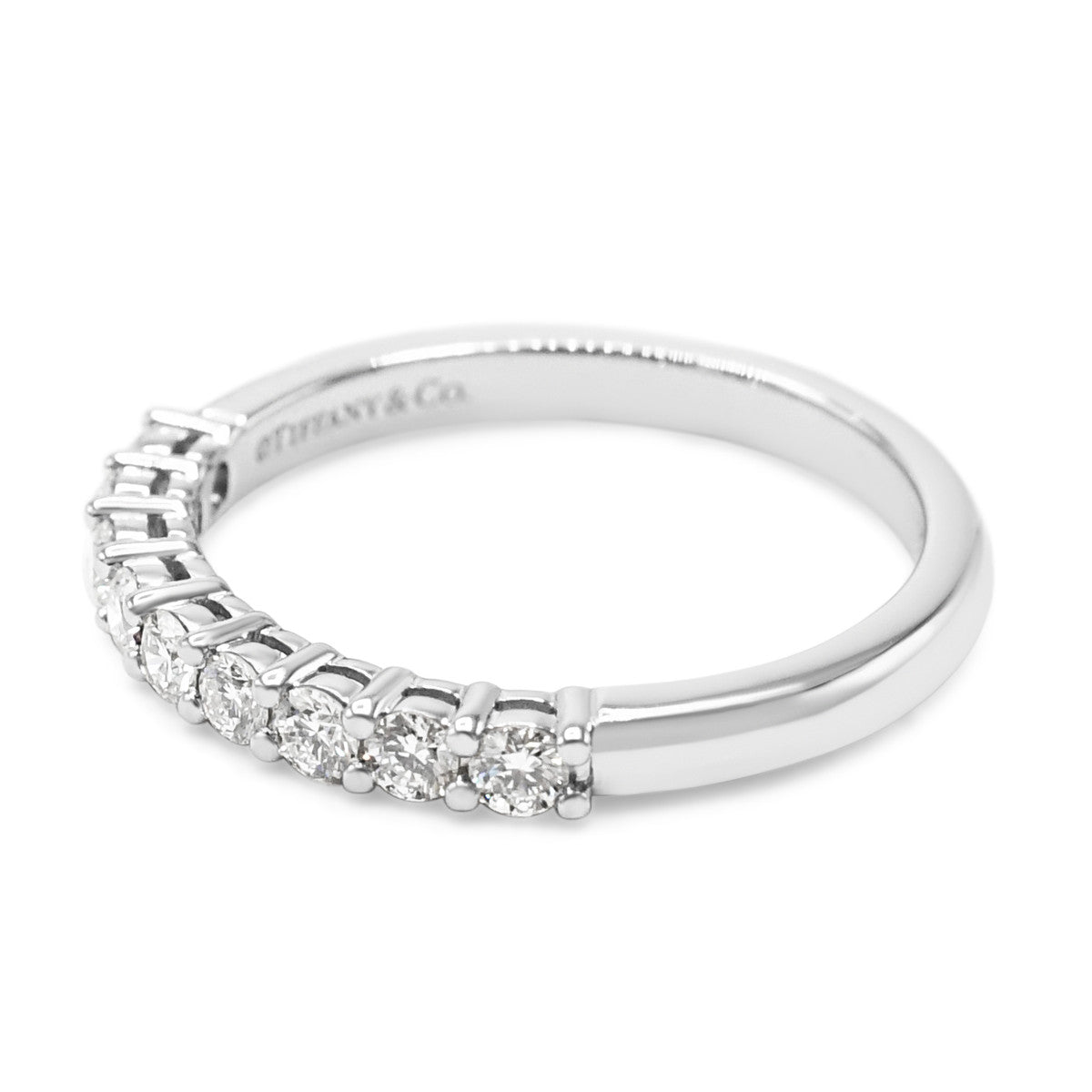 This exquisite Tiffany & Co platinum ring epitomises timeless elegance with its iconic half-circle diamond design.