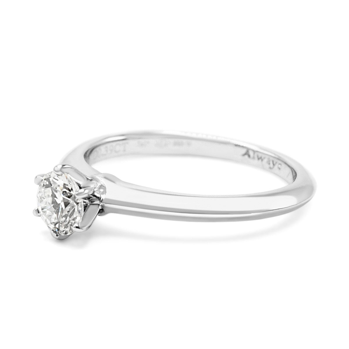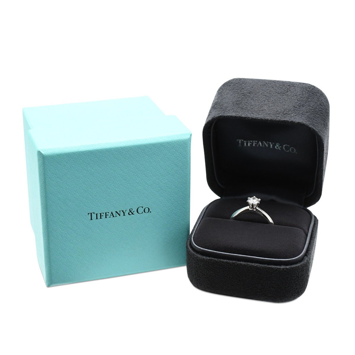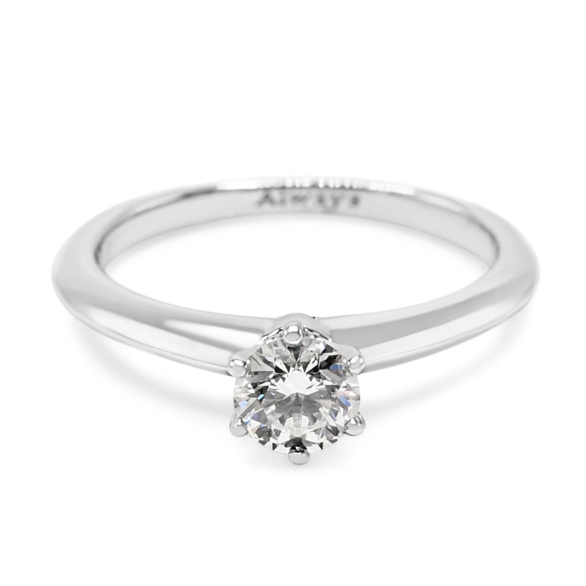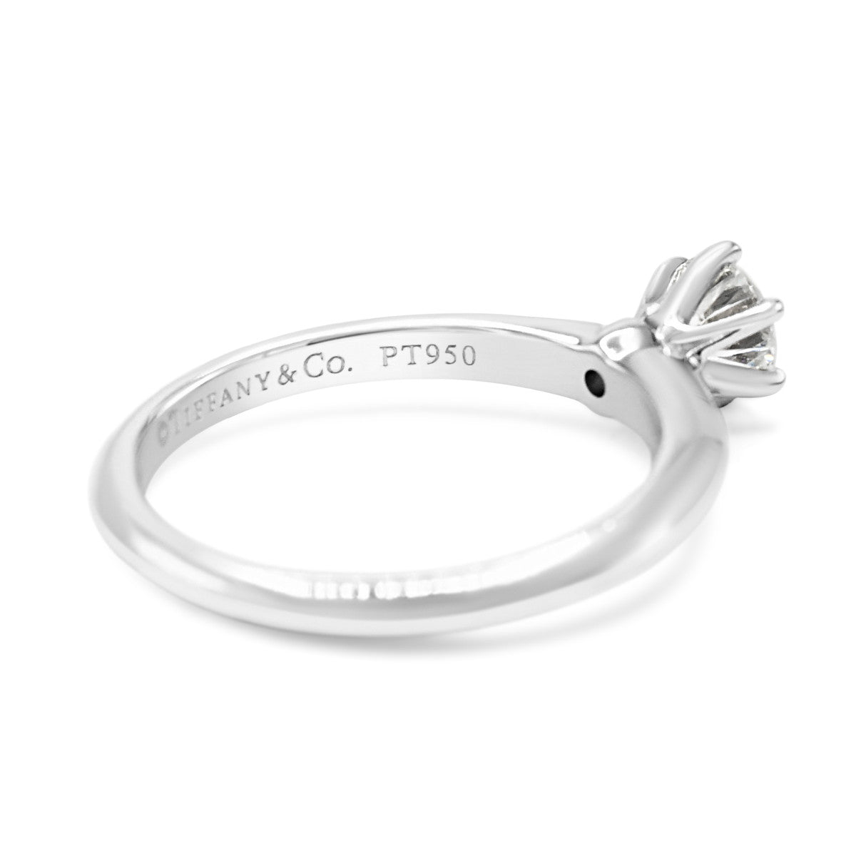 This exquisite Tiffany & Co solitaire ring showcases a brilliant cut diamond of 0.39 carats, graded H colour and VS clarity, set in lustrous platinum.