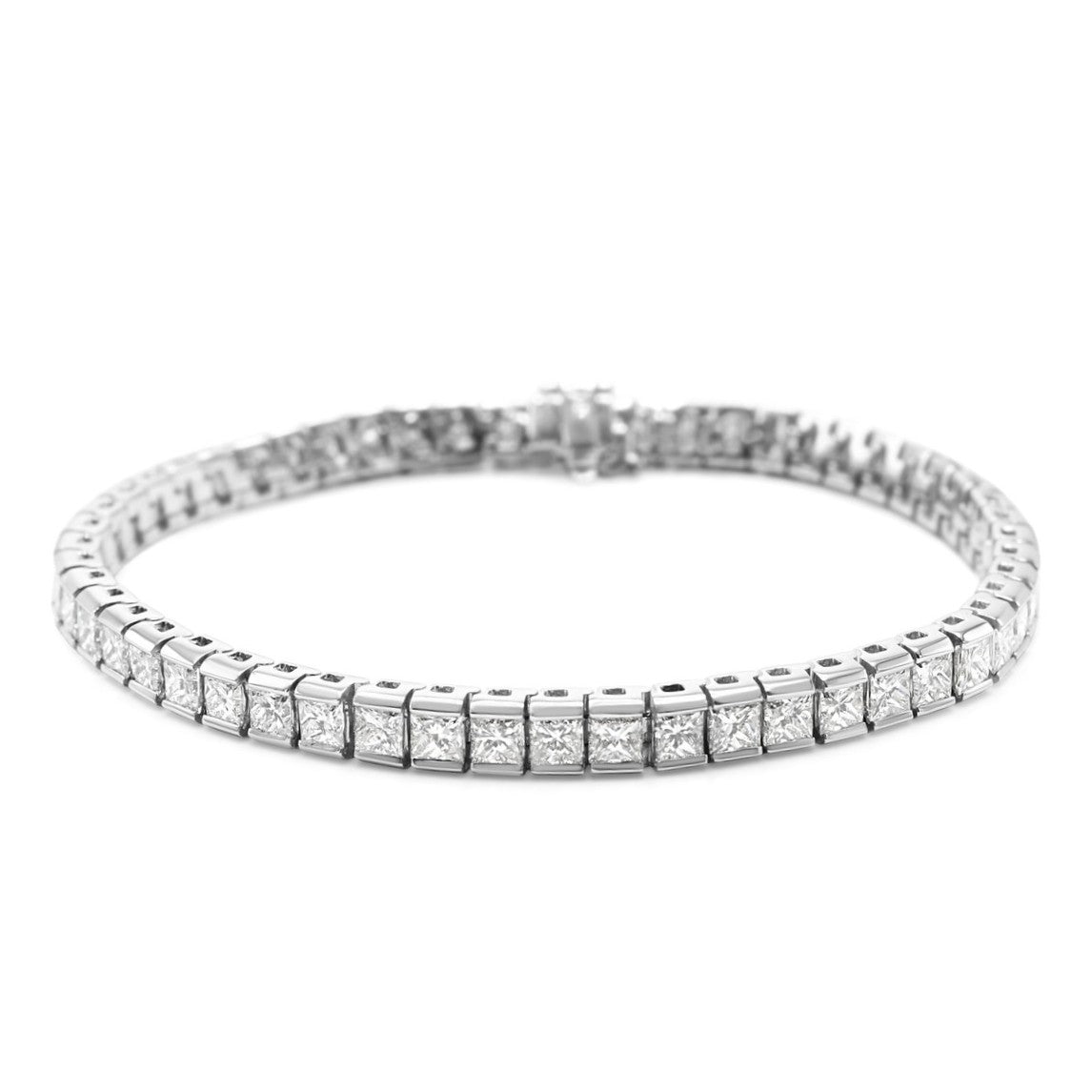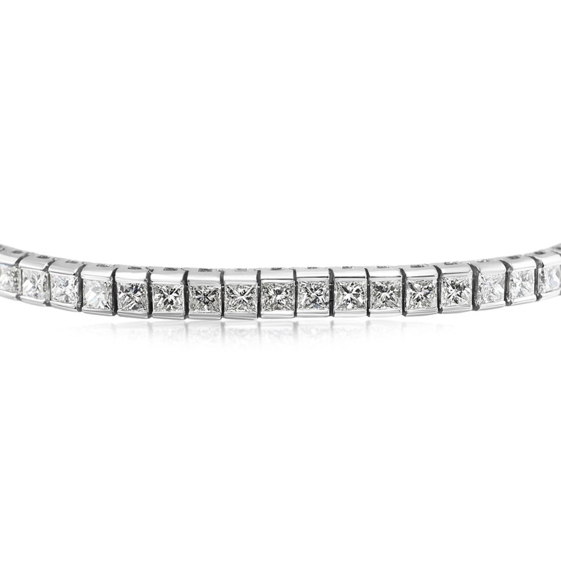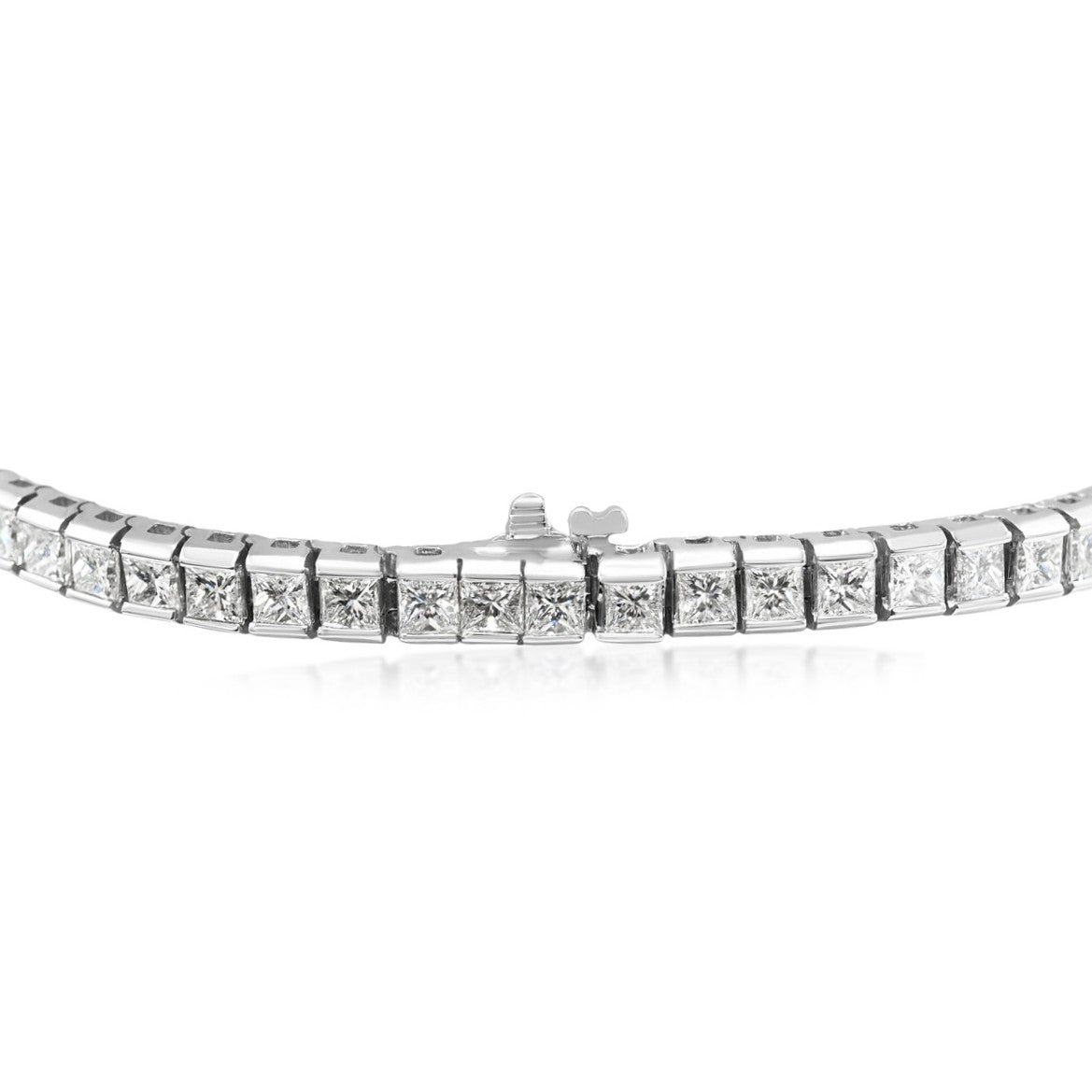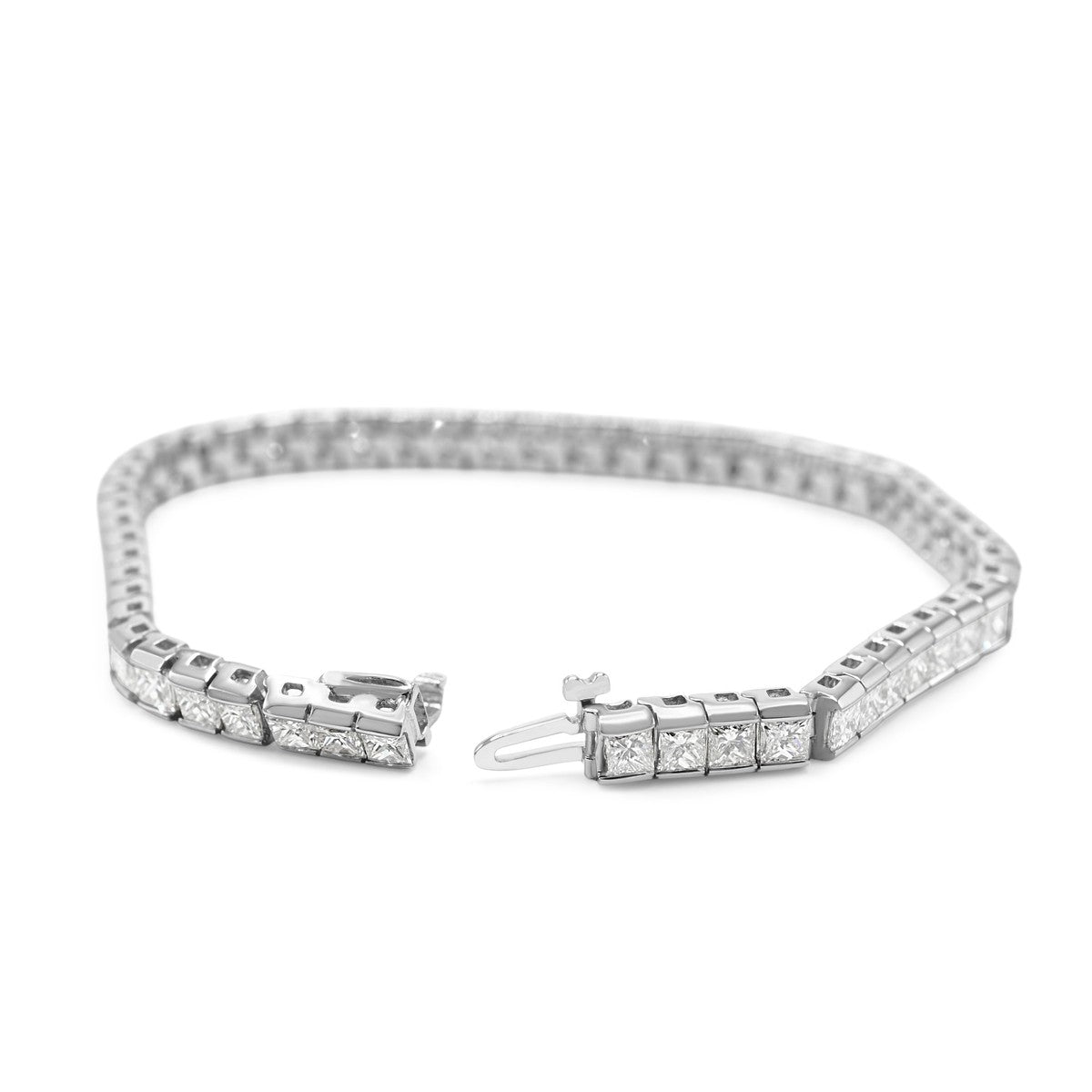 This exquisite tennis bracelet showcases approximately 8 carats of princess cut diamonds in a refined line setting, crafted from 18ct white gold. The diamonds, estimated H-J colour and VS1-SI2 clarity, deliver brilliant sparkle with excellent light performance.