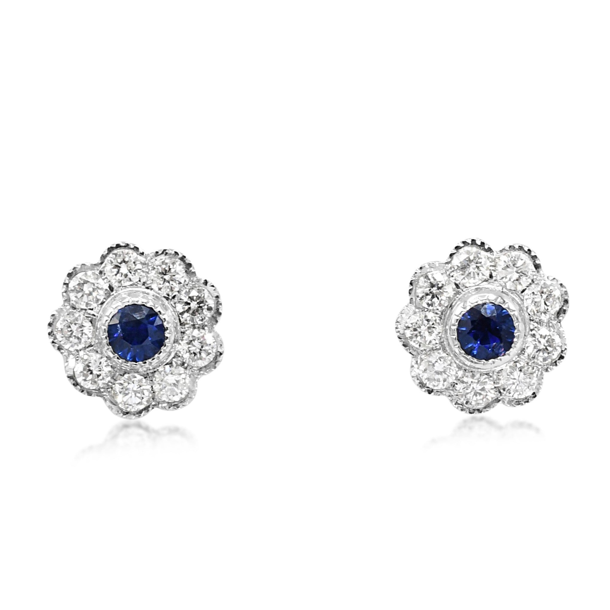 Sapphire & Diamond Daisy Cluster Earrings - Platinum