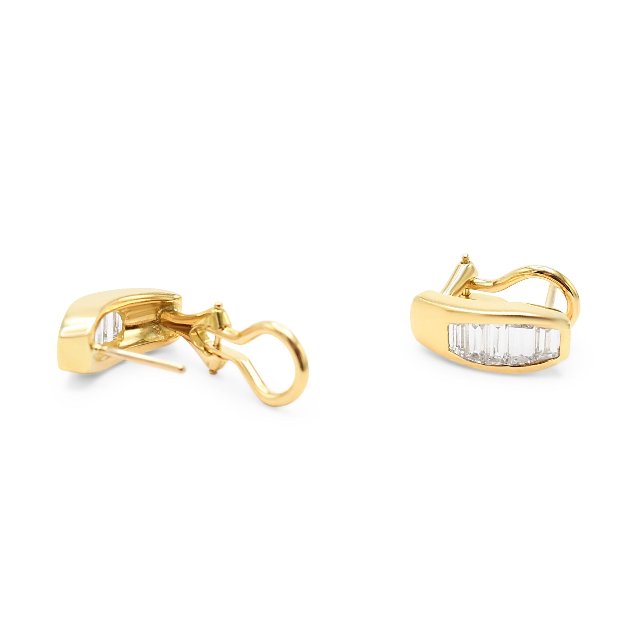 Baguette Cut Diamond Set Earrings - 18ct Yellow Gold