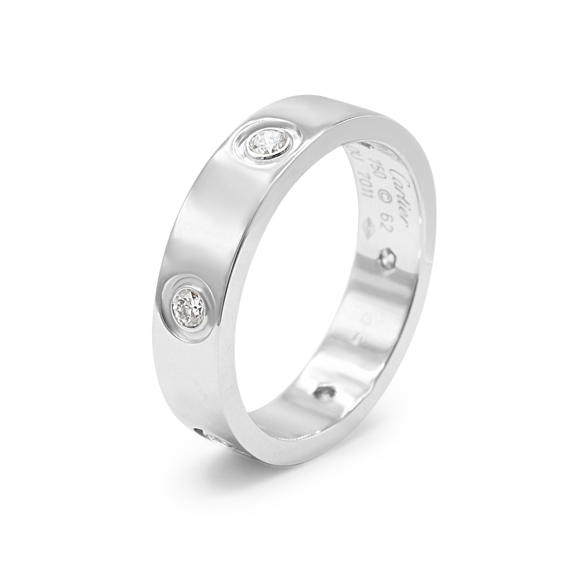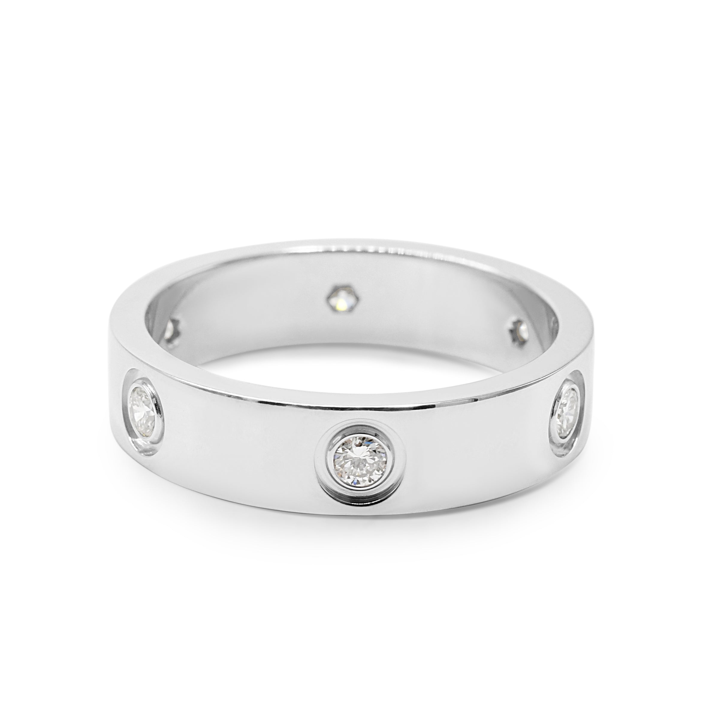 Introducing this stunning second hand Cartier 5.5mm Love Ring, the epitome of elegance and luxury. Meticulously crafted from 18ct White Gold, this ring exudes sophistication and glamour. Perfect for any occasion, it is a must-have for any fashion-forward woman.
