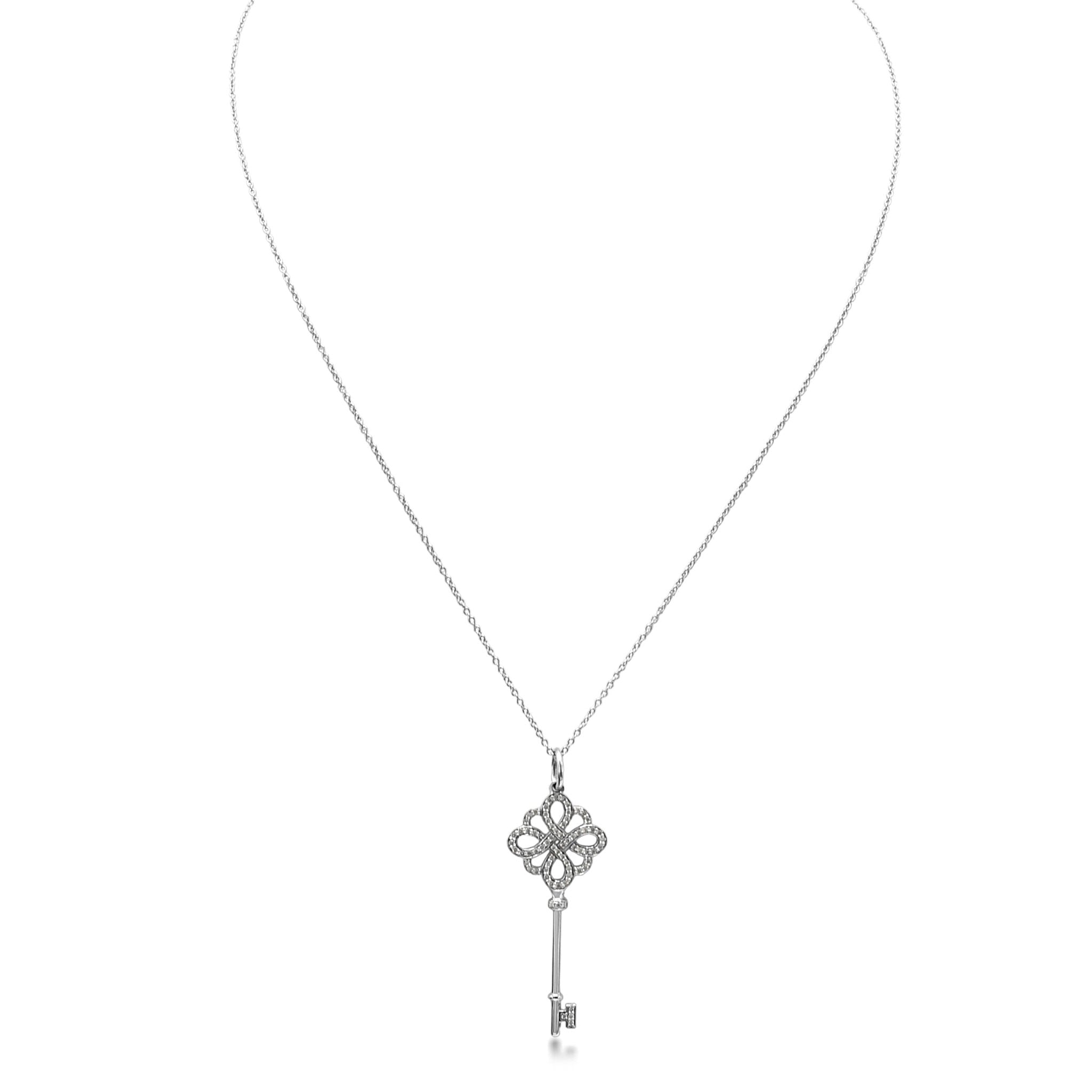 Attention all trendsetters, fashionistas, and lovers of luxurious jewellery! We have the perfect accessory that will elevate your style game to new heights – this second hand Tiffany Diamond Knot Key Pendant Necklace. This exquisite piece is not just a necklace, it's a statement of elegance and sophistication that will make you feel like a true queen.