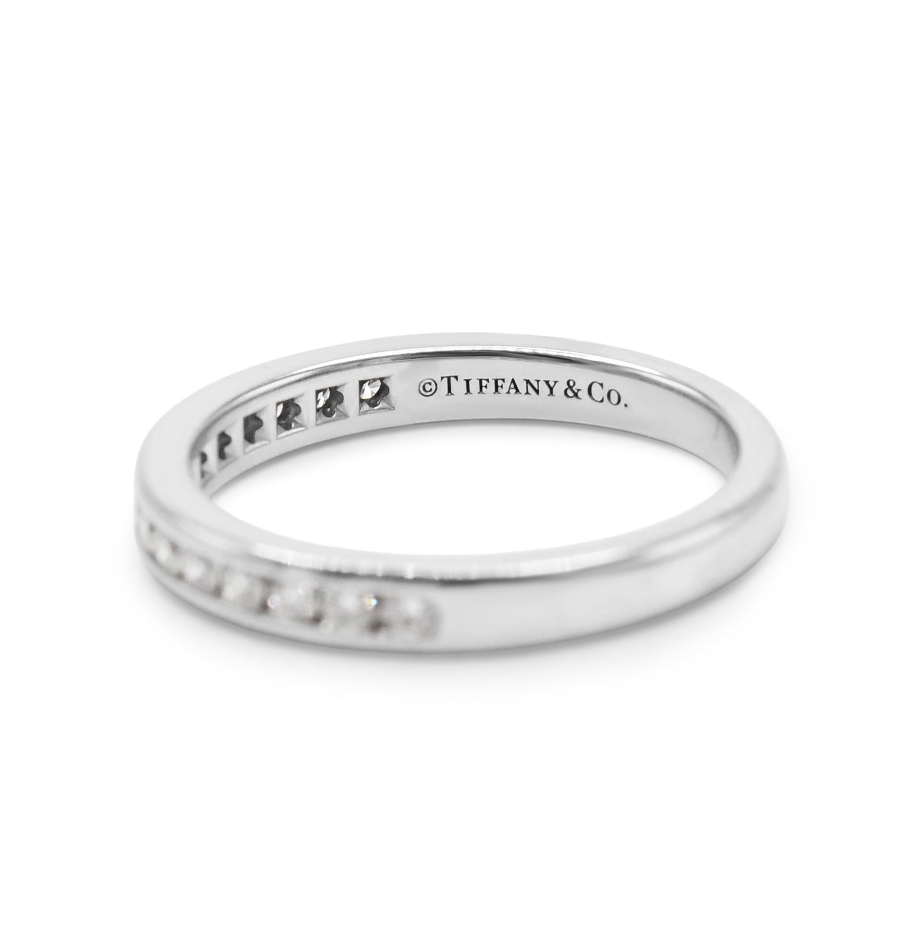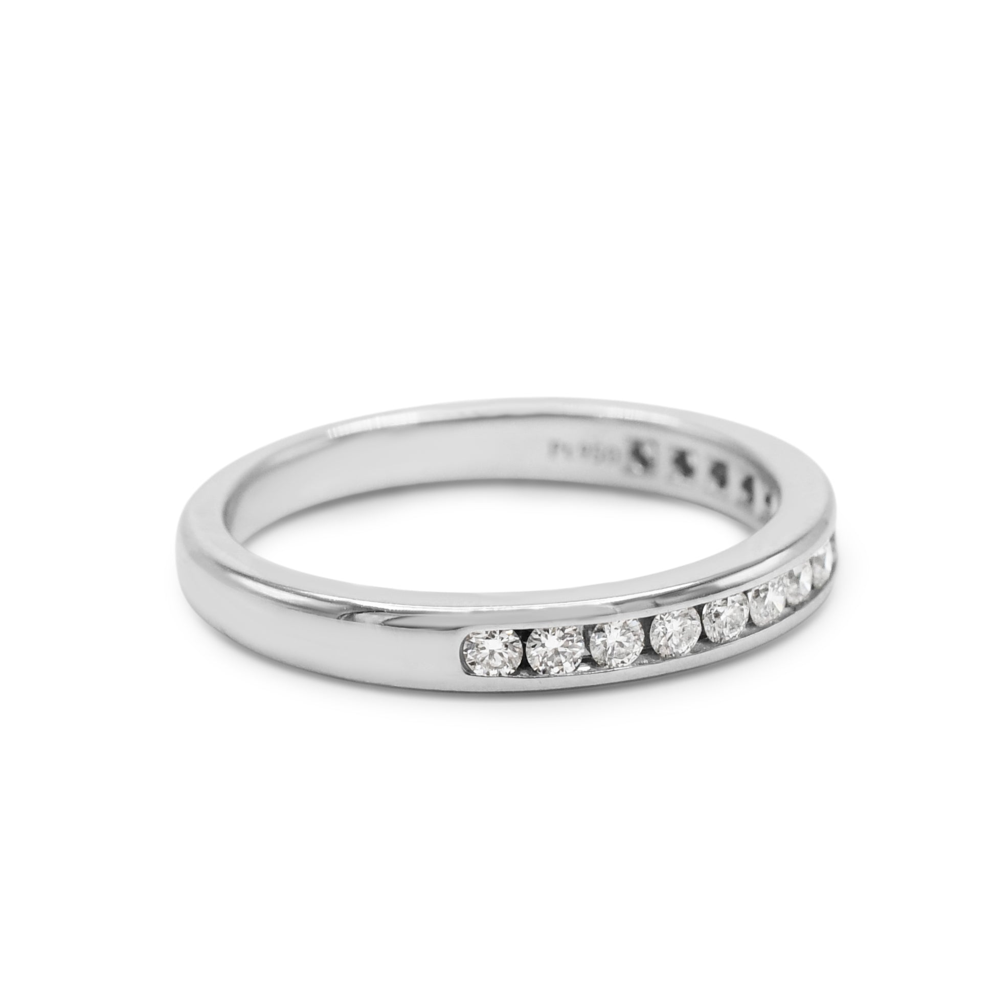 Introducing the ultimate symbol of love and commitment - This second hand Tiffany Setting Half-Circle Of Diamonds 2.5mm Ring. This exquisite piece of jewellery from the prestigious Tiffany & Co brand is guaranteed to take your breath away. Specially crafted for the modern woman who values both elegance and sophistication, this ring is bound to become the highlight of your jewellery collection.