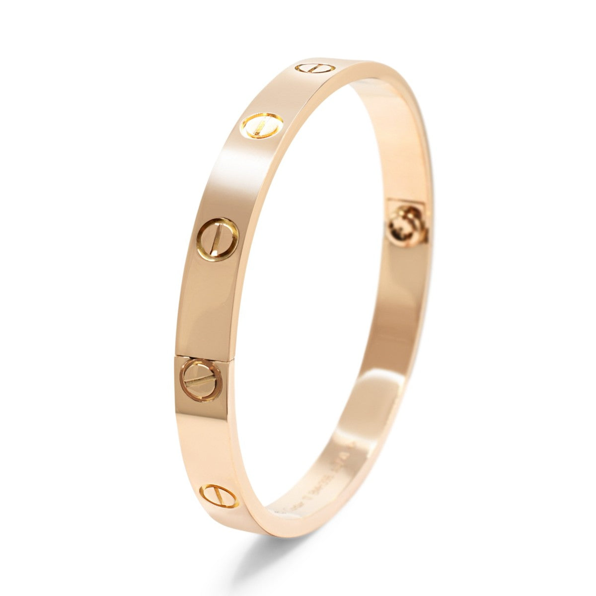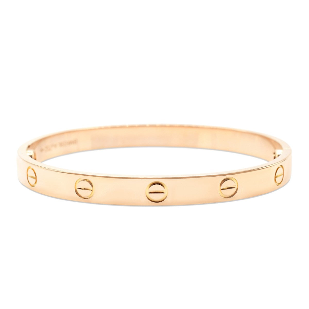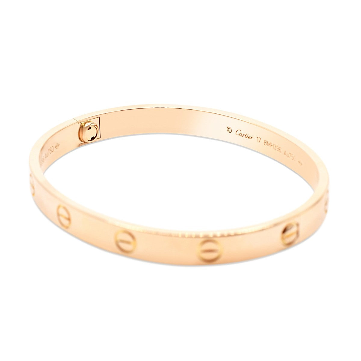 The iconic Cartier Love bracelet in 18ct rose gold, a timeless symbol of devotion and luxury. This unisex bangle features the signature screw design that defines the collection, crafted with precision and elegance. Size 17 fits most wrists comfortably.