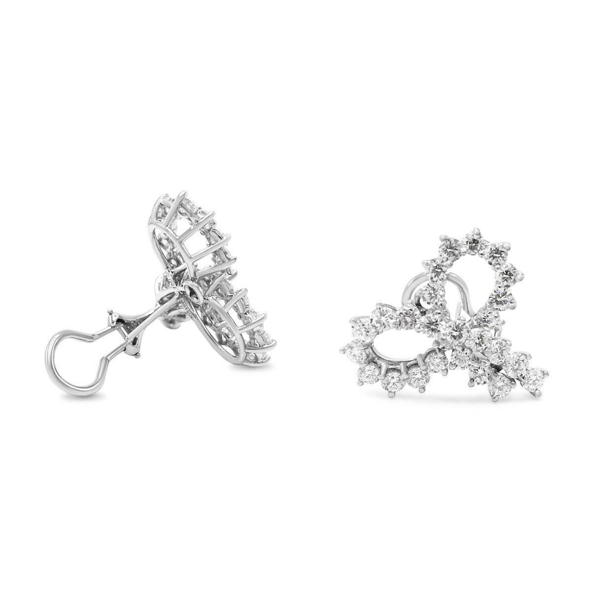Elevate your jewellery collection with these exquisite Tiffany & Co diamond earrings, featuring a sophisticated ribbon design that captures light beautifully. These stunning earrings showcase brilliant-cut diamonds totalling approximately 4.48 carats, crafted to perfection and hallmarked with the iconic Tiffany & Co signature.