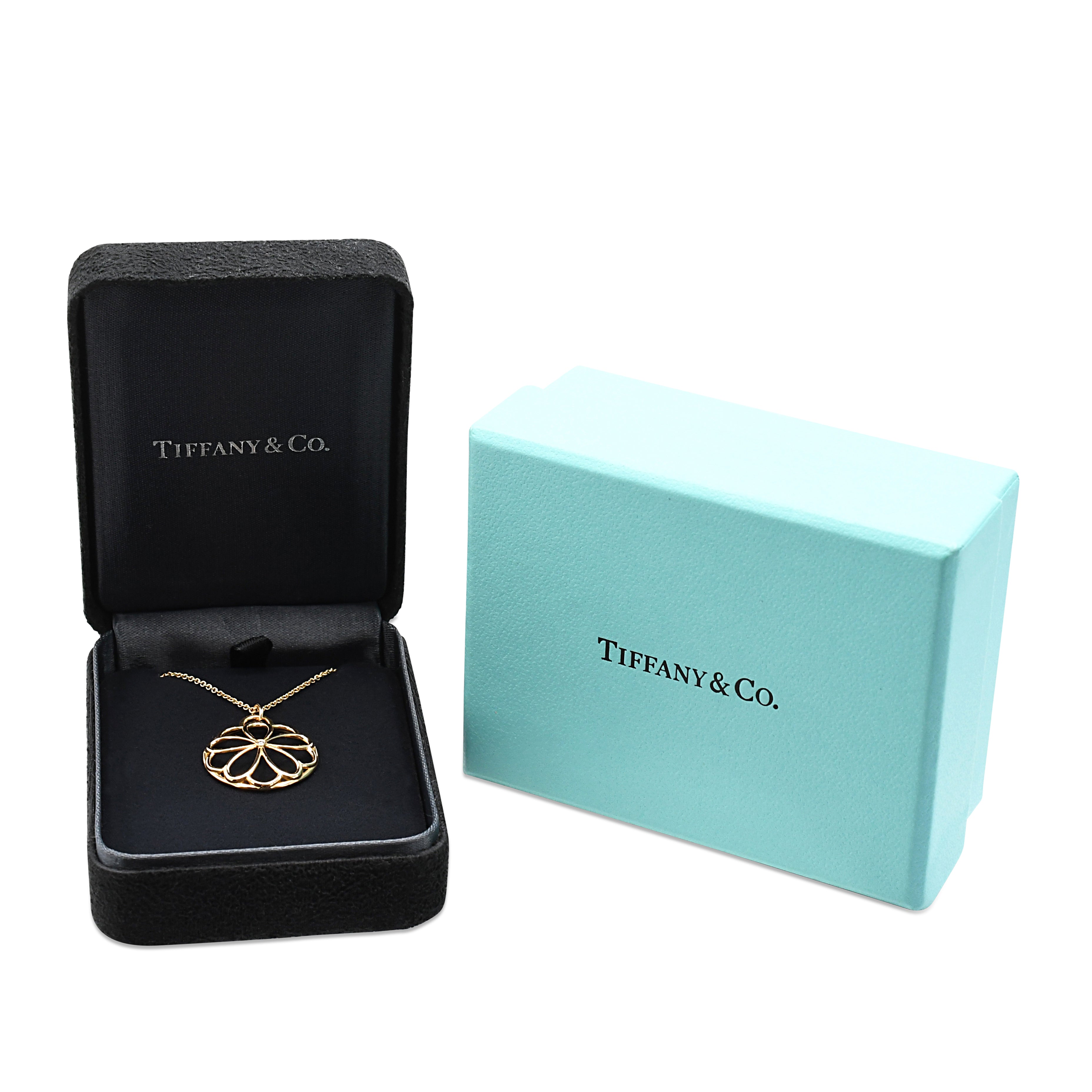 Elevate your everyday elegance with this exquisite Tiffany & Co Diamond Blossom pendant, crafted in luxurious 18ct rose gold. The delicate floral design features an approximate 0.015ct diamond that catches the light beautifully, suspended on a 40cm necklace.