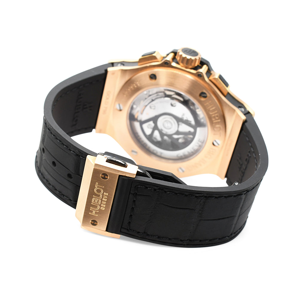 Made with 18ct Rose Gold, this pre-owned watch exudes an aura of prestige and elegance. The 44mm case diameter, specially designed for the modern man, is the perfect size to make a powerful statement on your wrist. The sleek black gummy alligator strap complements the rose gold case flawlessly, making this watch a true work of art.
