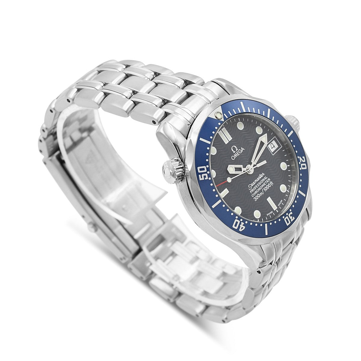 Originally produced in 2001, this watch has been meticulously restored by Omega's master technicians in January 2026, featuring a new crystal, bezel, and complete service to ensure optimal performance. The automatic movement powers this sophisticated instrument with reliable precision, whilst the bracelet accommodates wrists up to approximately 18.5cm.