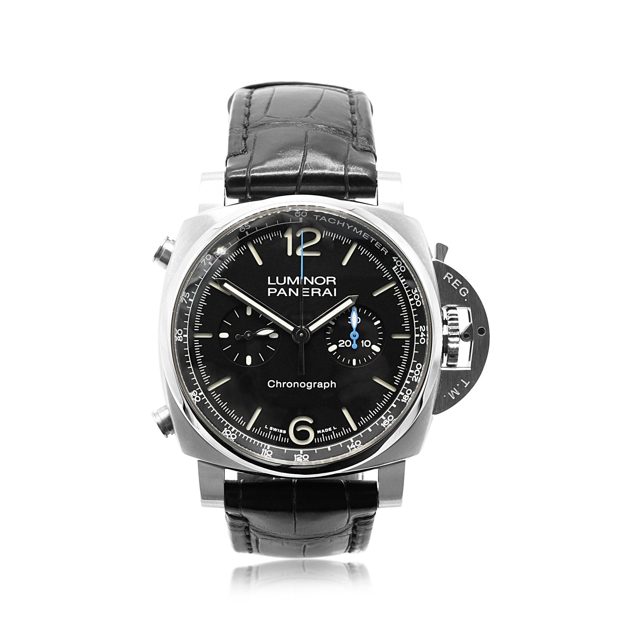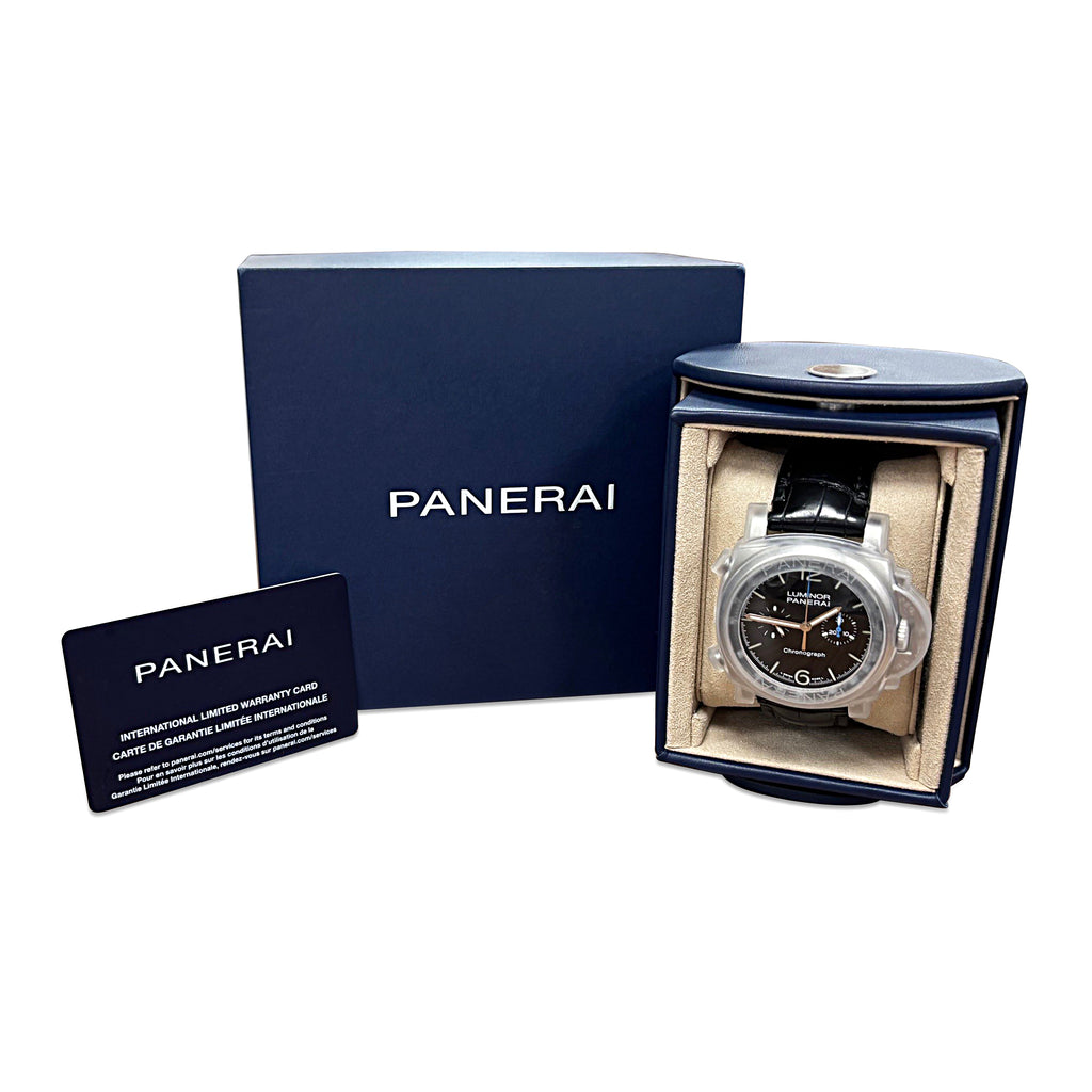 So why wait? Elevate your style game and add this pre-loved Panerai Luminor 44mm Chronograph Strap Watch to your collection today. With its classic design and modern features, this watch is sure to become your next go-to accessory for any occasion. Trust us, your wrist deserves the best, and this used Panerai Luminor 44mm Chronograph Strap Watch delivers exactly that.