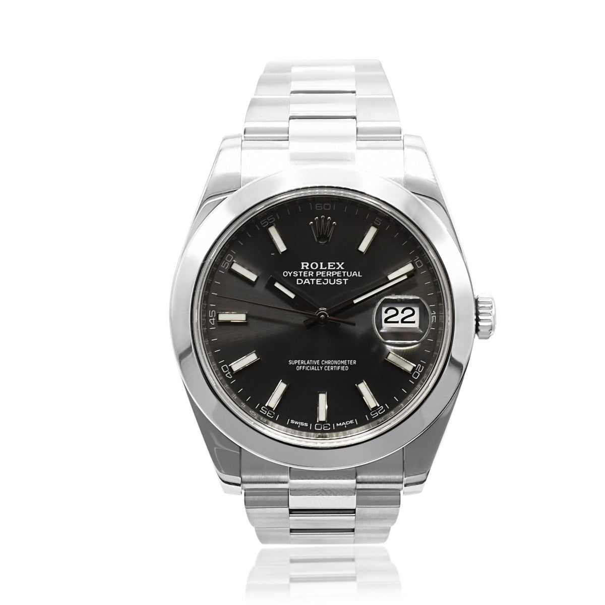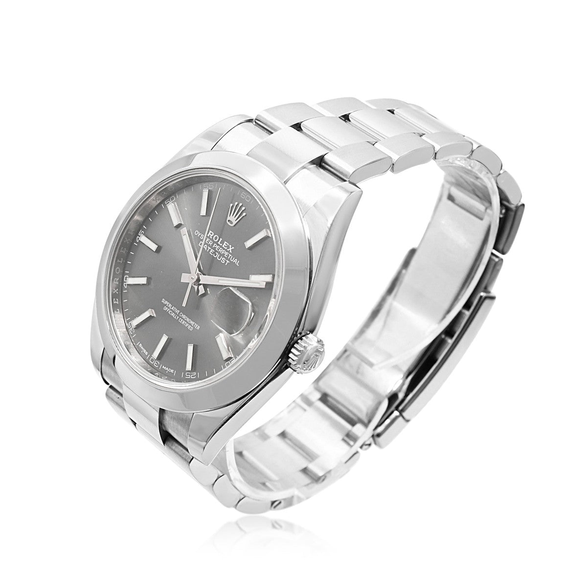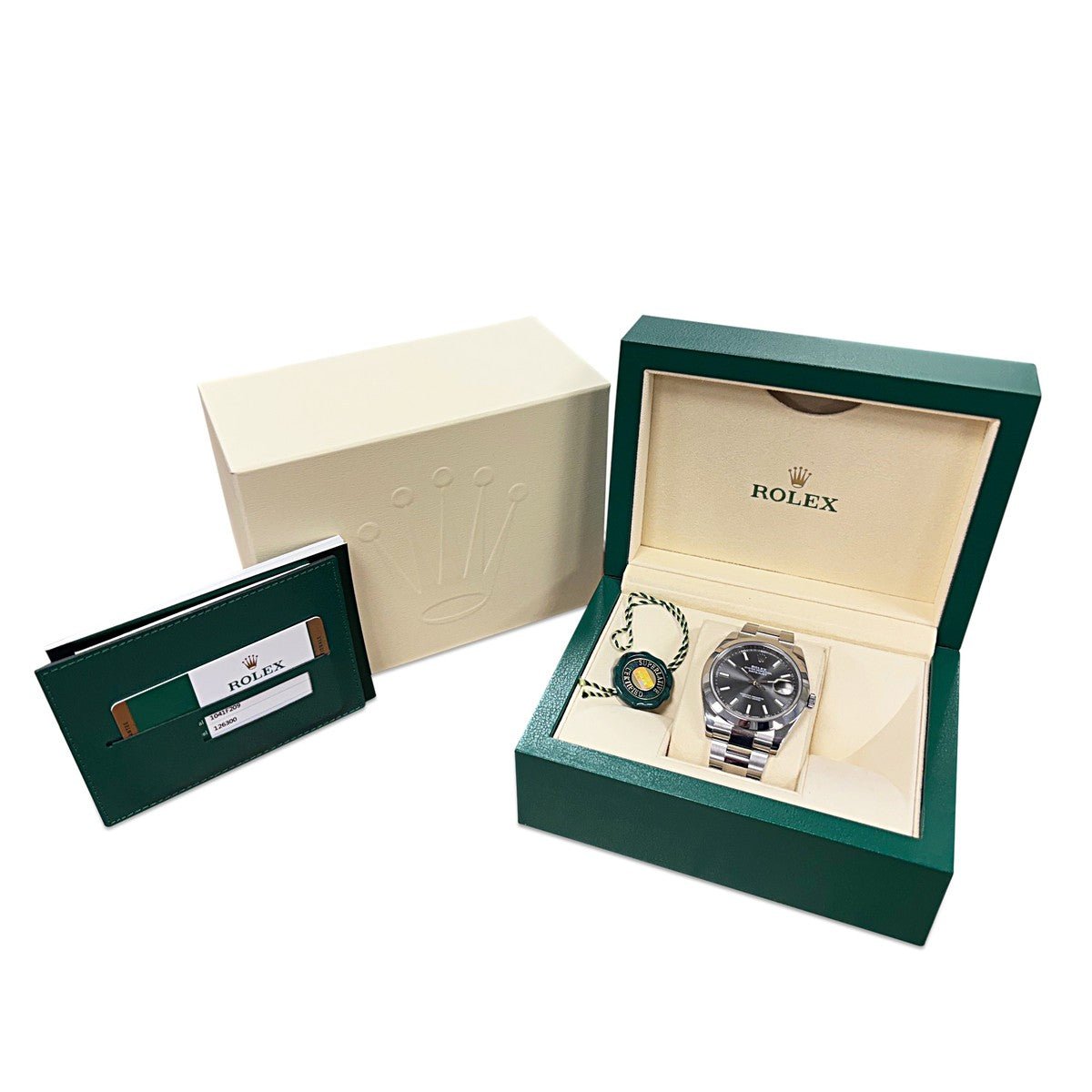 This distinguished Rolex Datejust 41 represents timeless elegance in stainless steel. The 41mm case houses a refined grey dial, whilst the full-size 12-link steel bracelet accommodates wrists up to approximately 20cm.