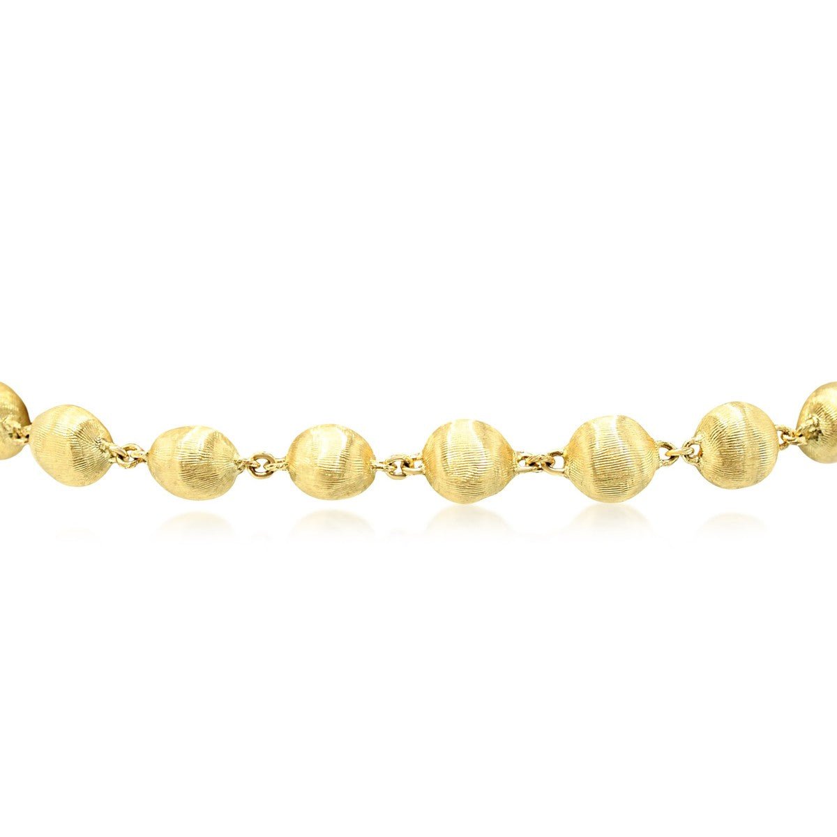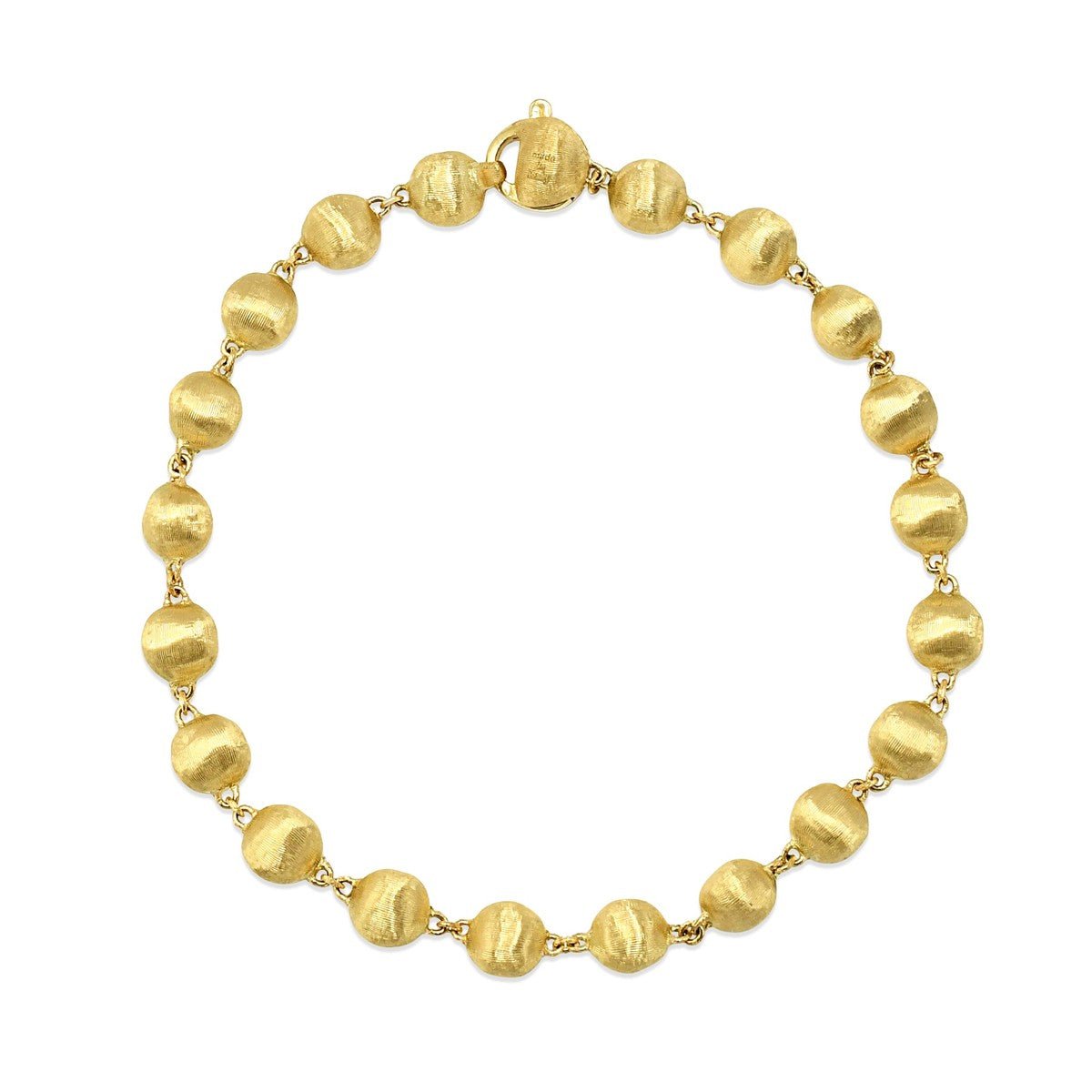 Marco Bicego's Africa bracelet exemplifies refined elegance in 18ct yellow gold. This exquisite second-hand piece features delicately crafted beads measuring 5.9mm, strung to a graceful 7.5" length—ideal for everyday sophistication or special occasions.