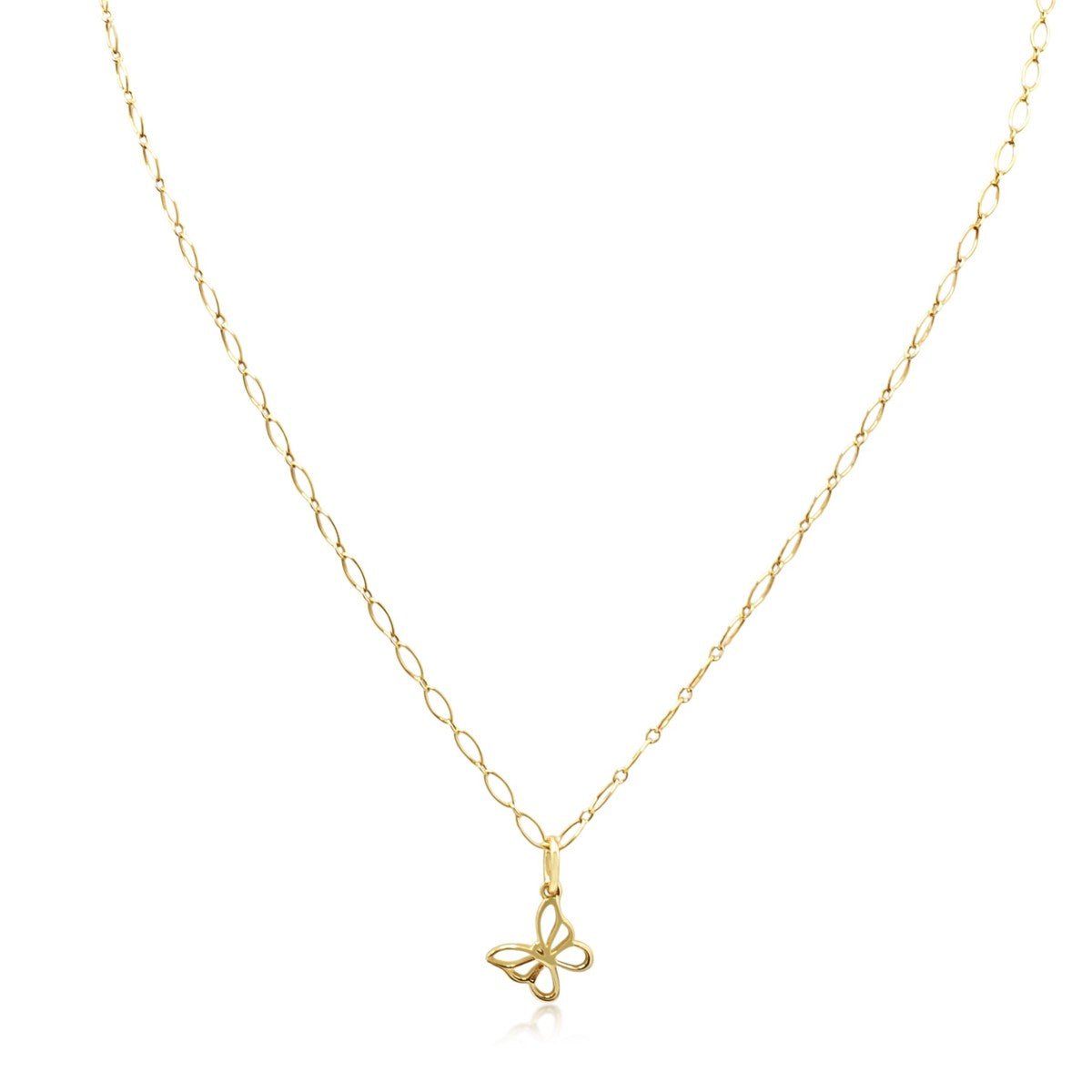 Elegant Tiffany & Co butterfly pendant necklace crafted in 18ct yellow gold. This timeless piece features a delicate pendant measuring 12.5 x 12mm, suspended from a 46cm chain—perfect for layering or wearing solo. Weighing just 4g, it offers refined sophistication with everyday wearability.