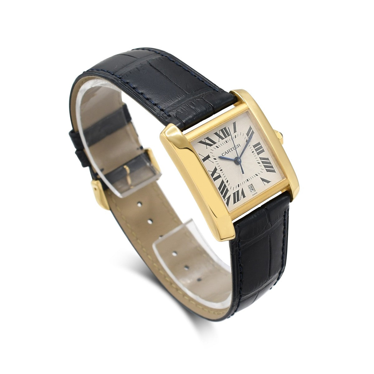 Discover timeless elegance with this Cartier Tank Francaise automatic watch, a masterpiece of Swiss horological craftsmanship. Crafted in 18ct yellow gold, this iconic model (Ref 1840) features a refined 32 x 28mm case and is secured by a luxurious new Cartier medium blue alligator leather strap.