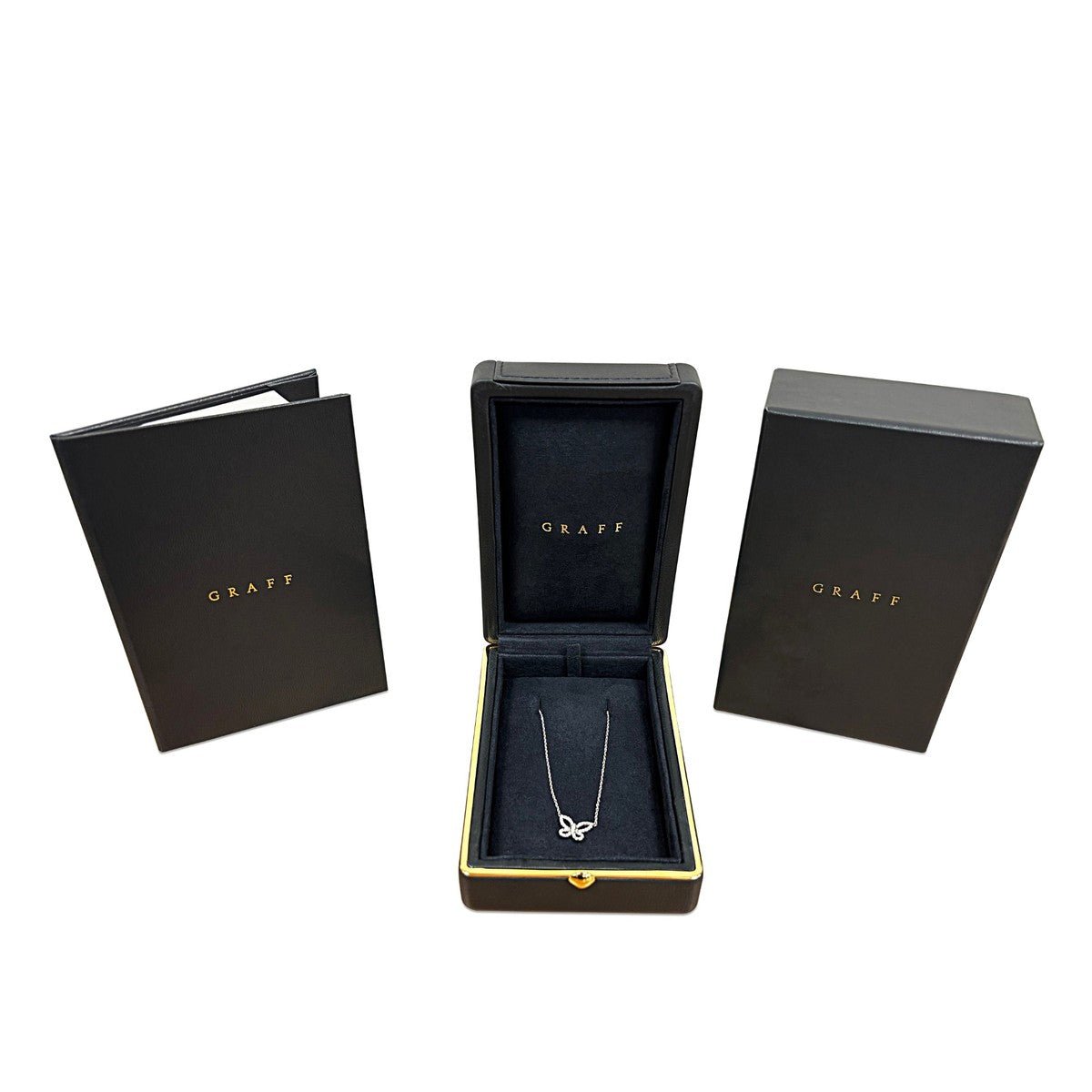 The graceful butterfly silhouette measures just 11mm x 8mm, making it the perfect understated luxury accessory. At 46cm, the necklace offers versatile styling options for any occasion. Comes complete with Graff box and certificate. A refined investment piece from 2025.