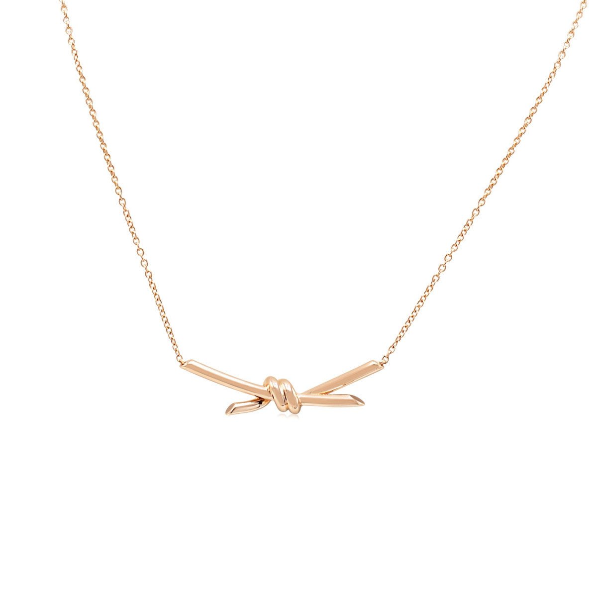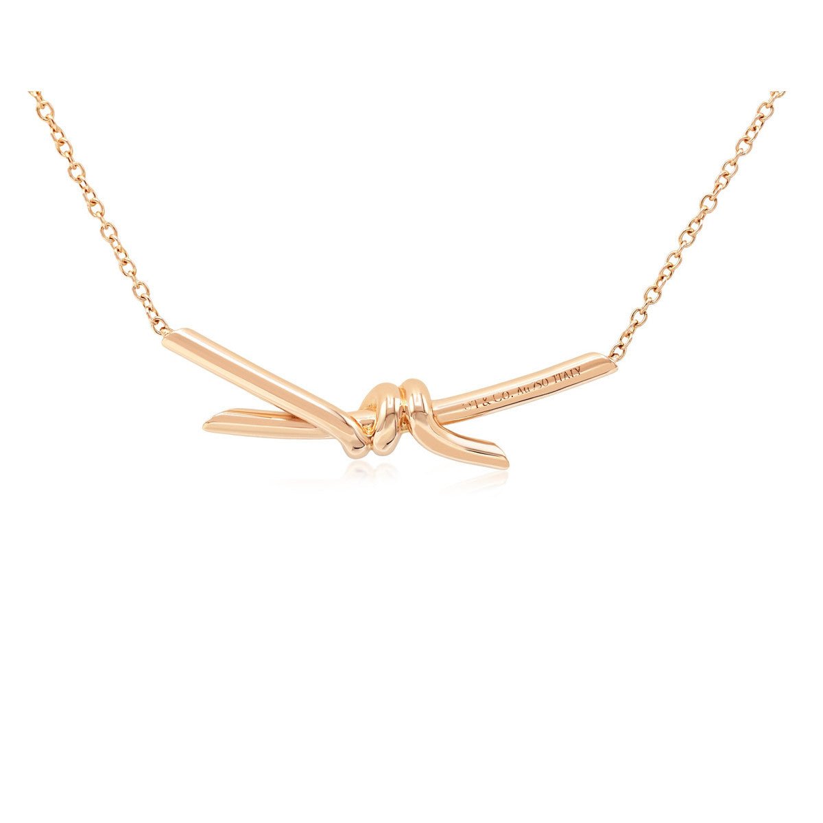 Elevate your jewellery collection with this exquisite Tiffany & Co Knot Pendant Necklace in rose gold. Crafted in rose and made in Italy, this timeless piece features the iconic Tiffany knot design that symbolises elegance and sophistication.