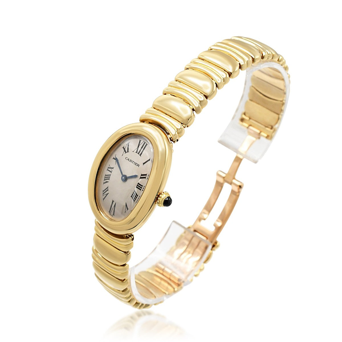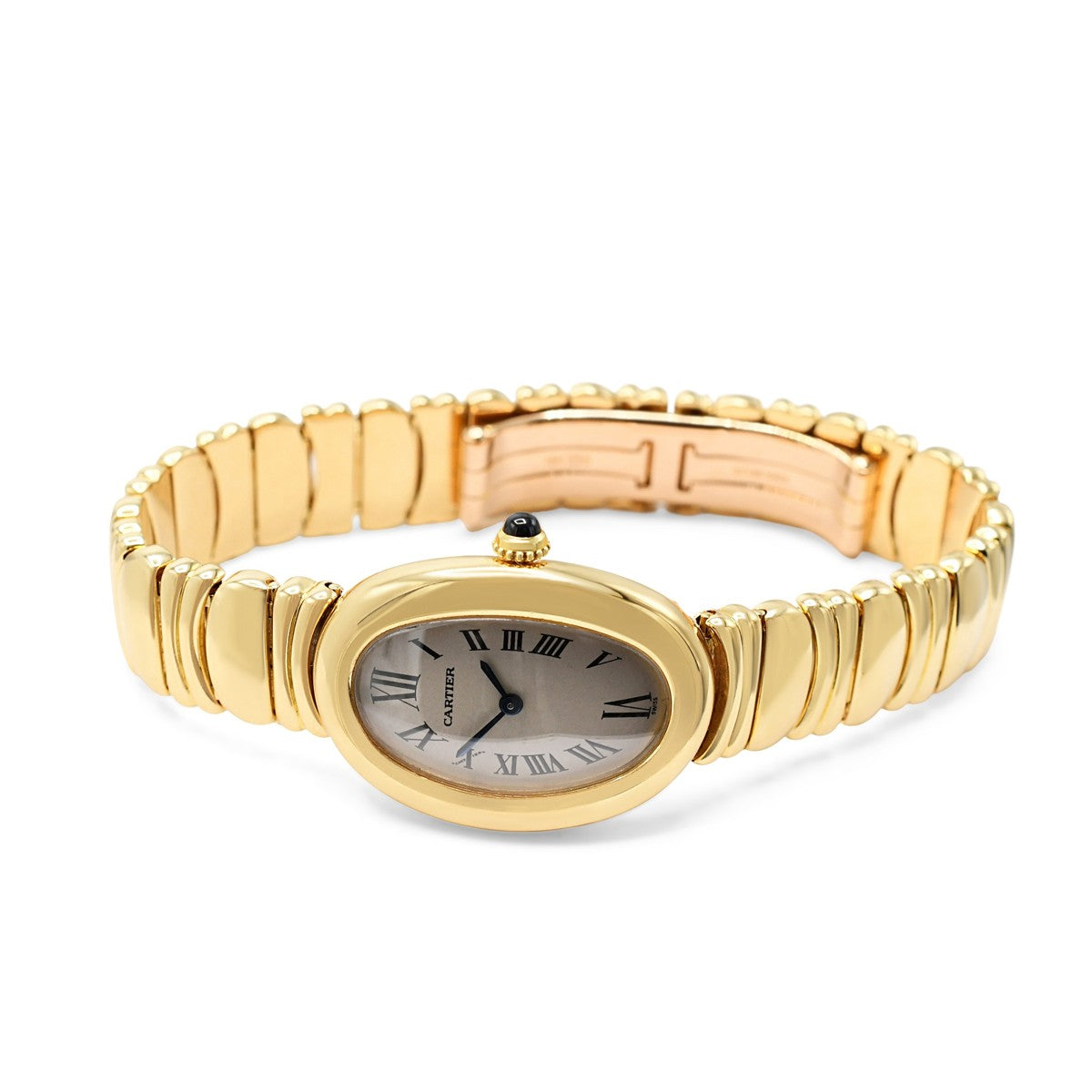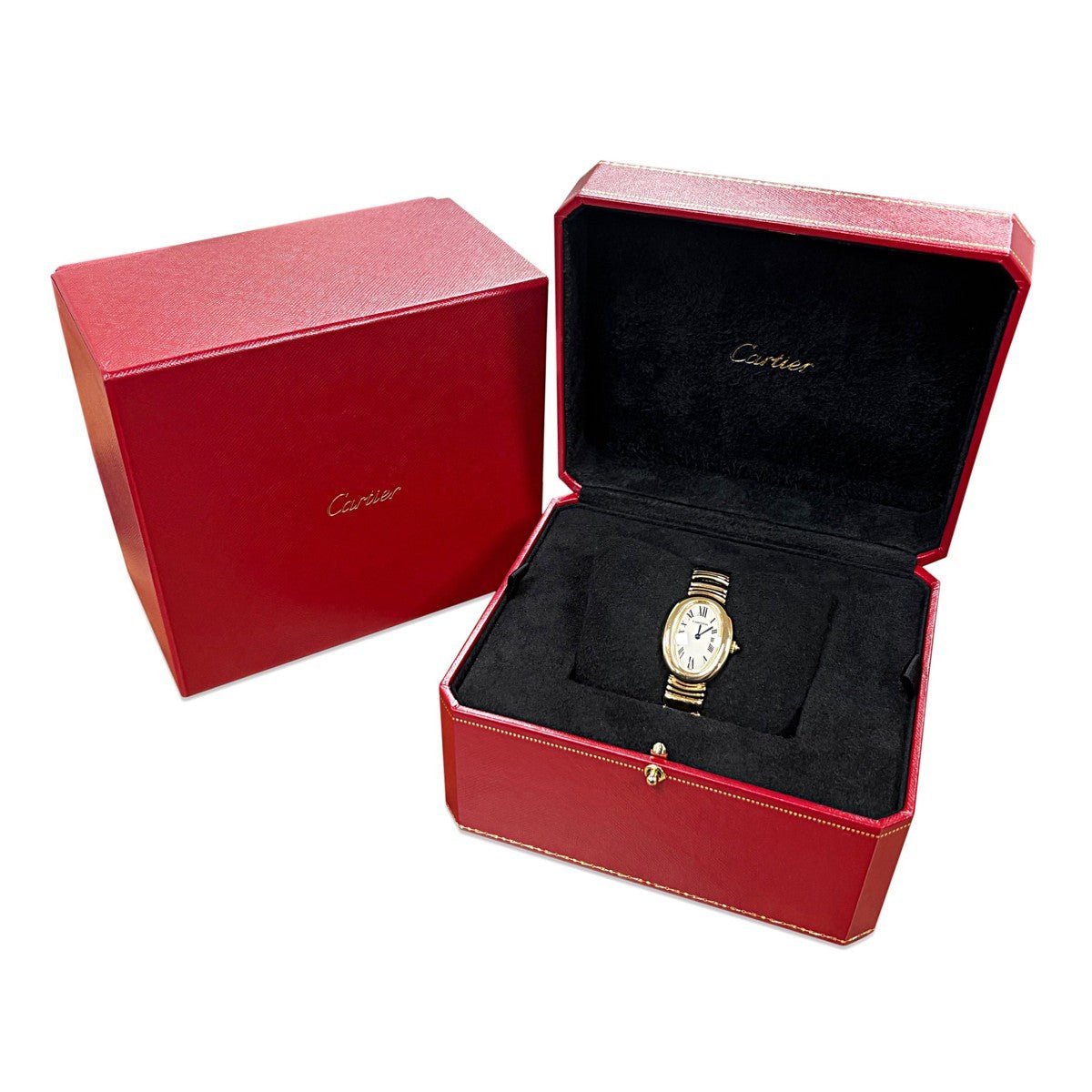 Presented with its original Cartier box and service documentation, this ladies' watch fits wrists up to approximately 18cm and carries a comprehensive 2-year Cartier warranty. A sophisticated accessory for the discerning collector, combining heritage craftsmanship with assured longevity.