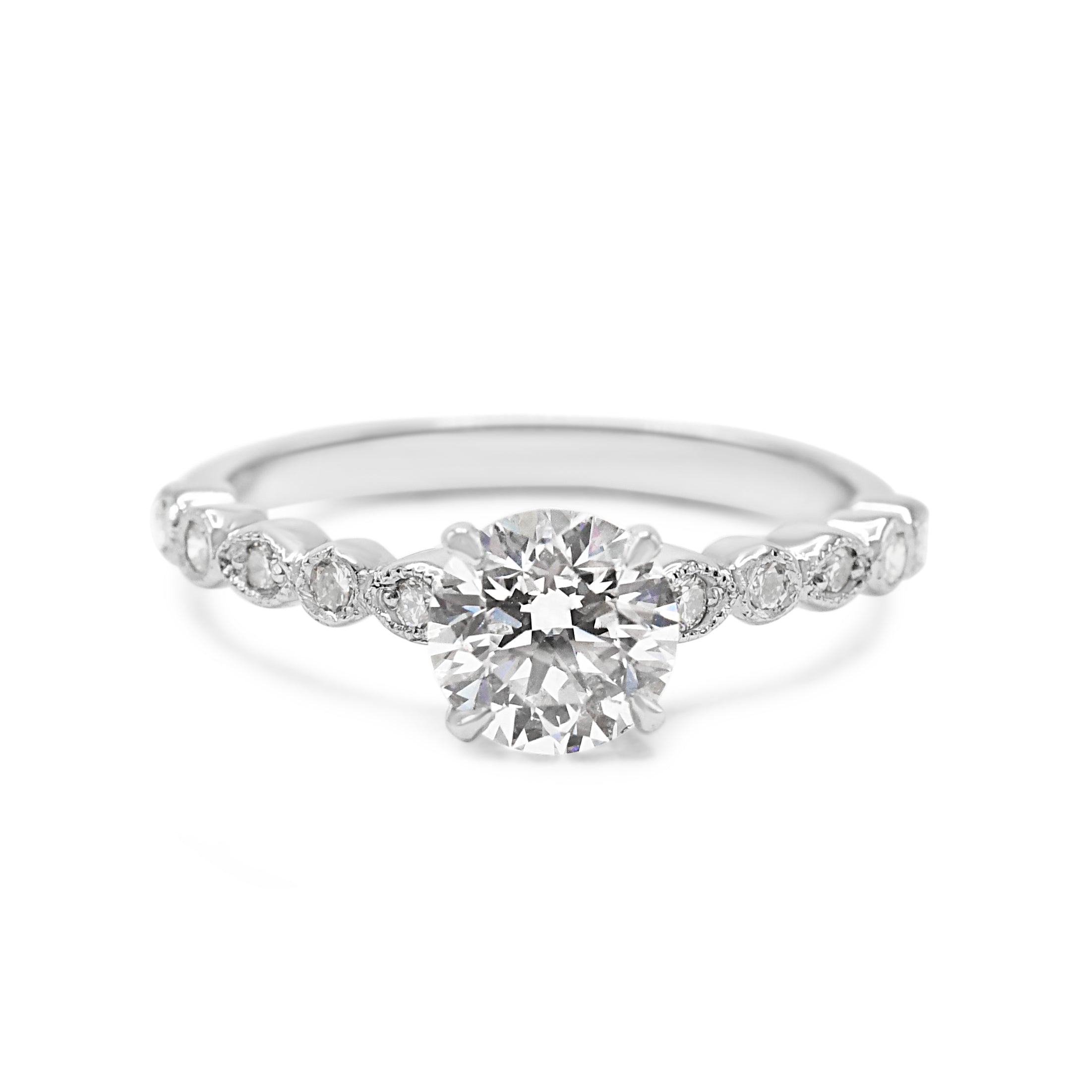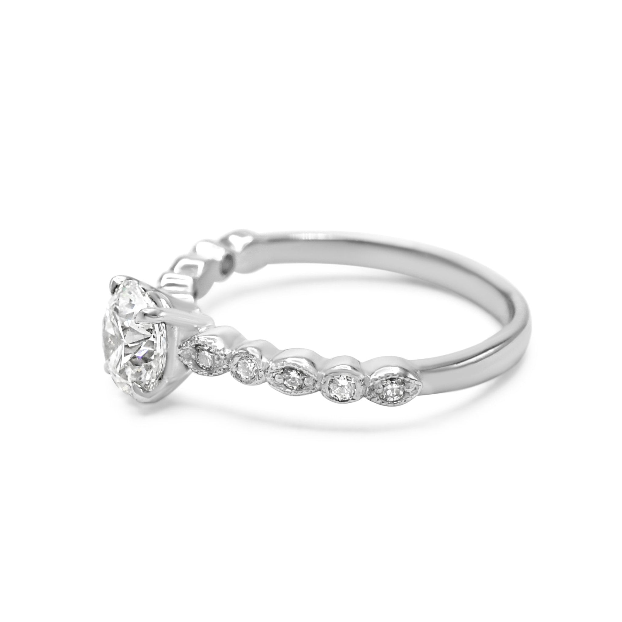 GIA Certificated Brilliant Cut Solitaire Ring, Diamond Shoulders
