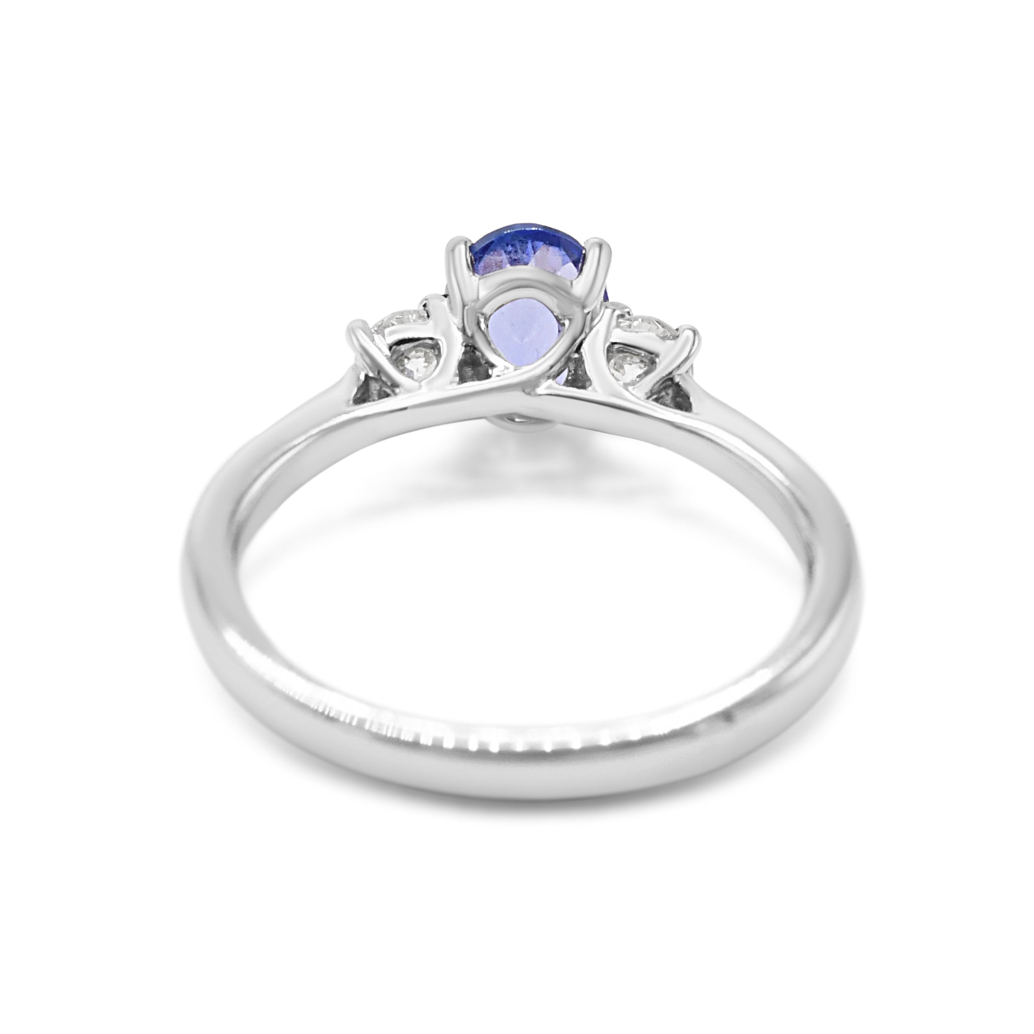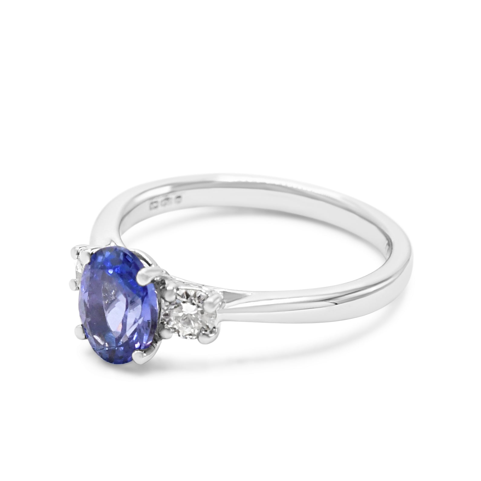 Oval Tanzanite & Brilliant Cut Diamond Three Stone Ring - Platinum