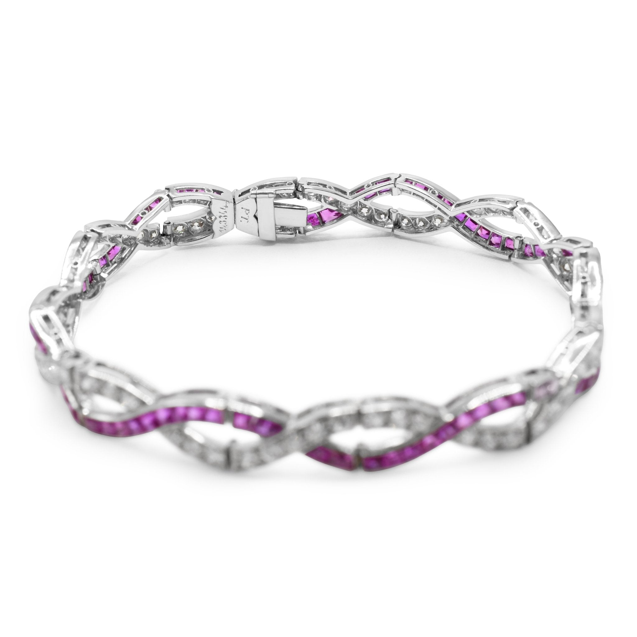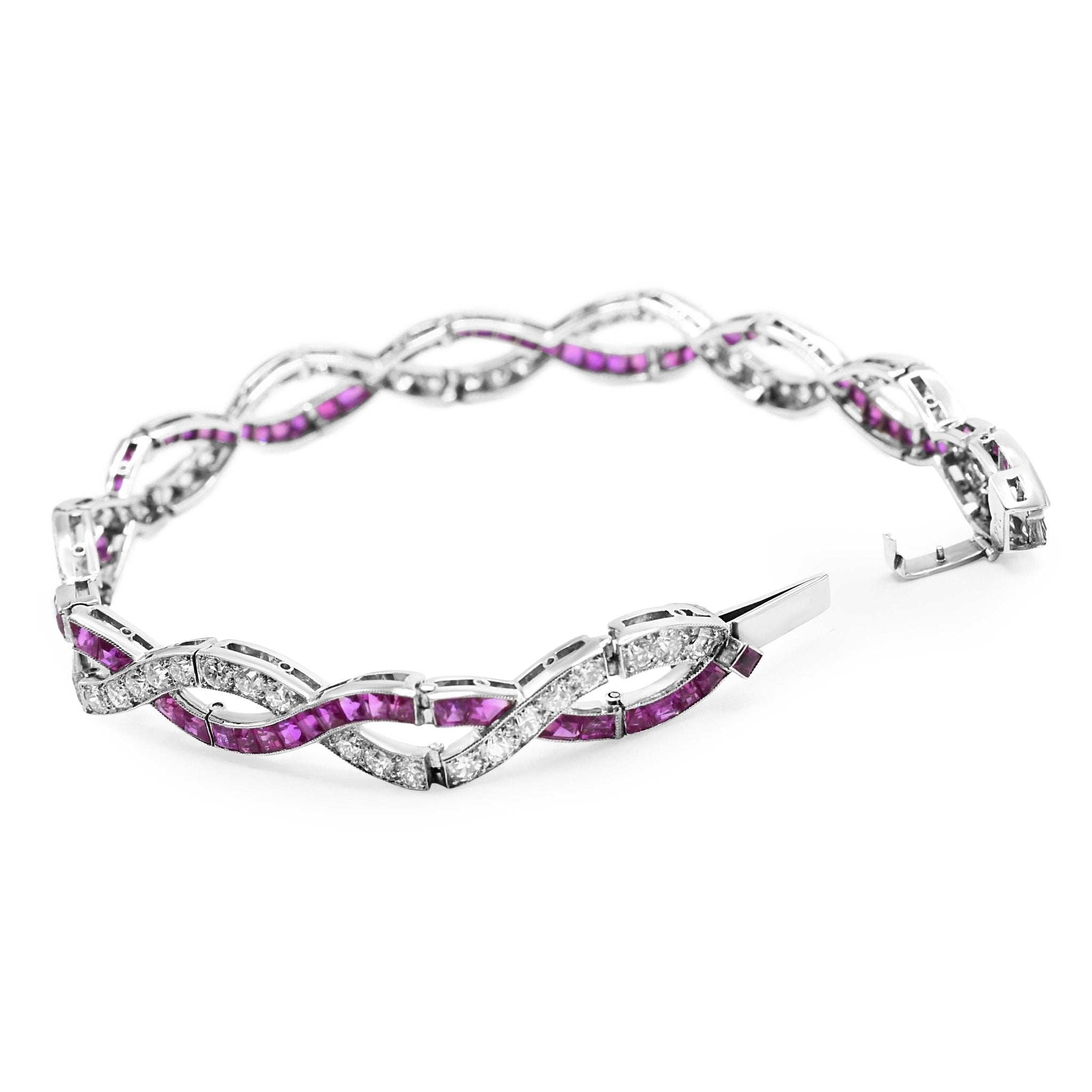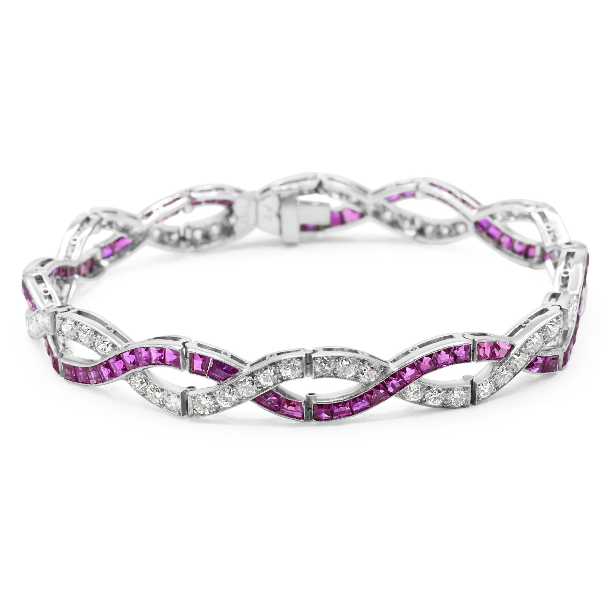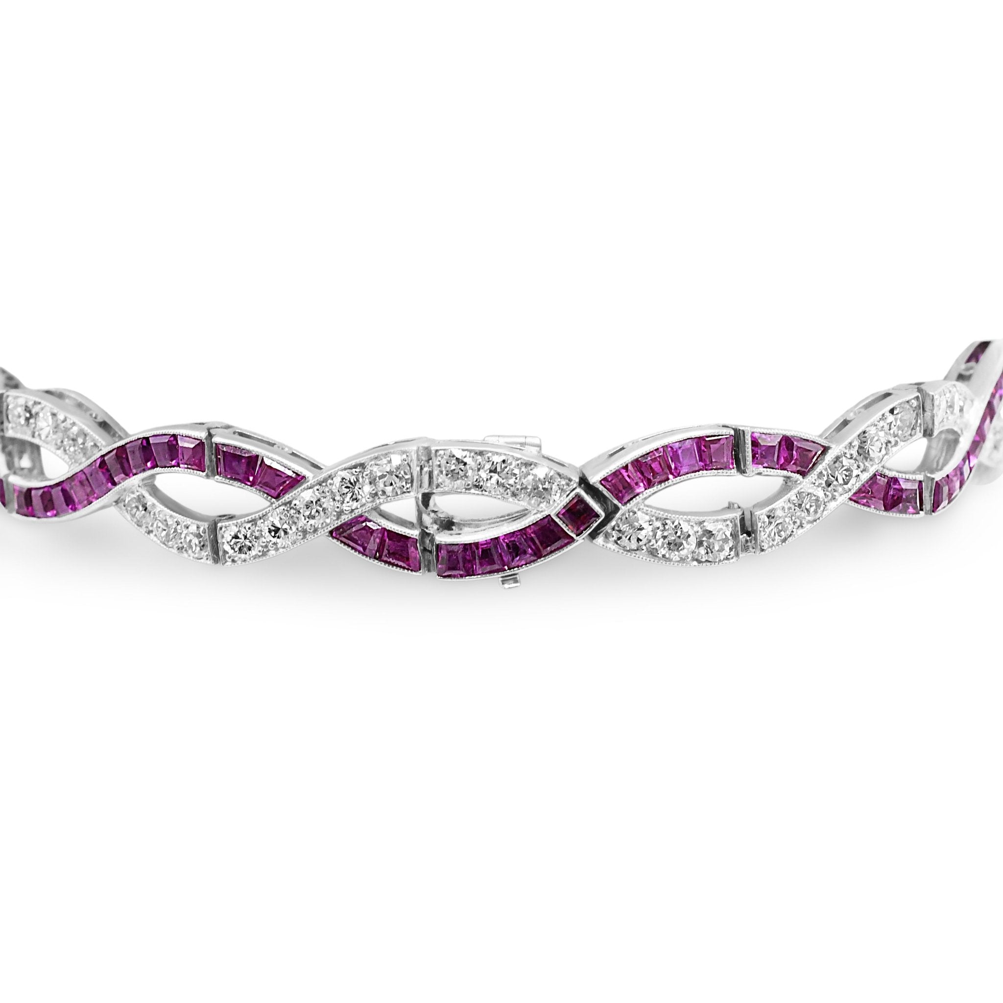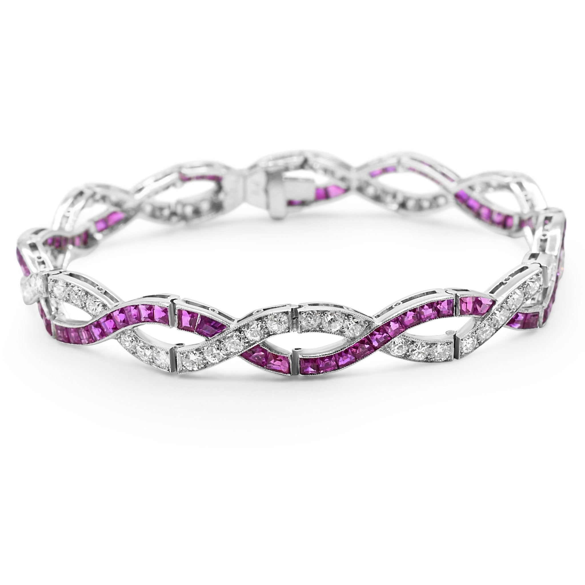 Vintage Calibre Cut Ruby & Brilliant Cut Diamond Entwined Bracelet