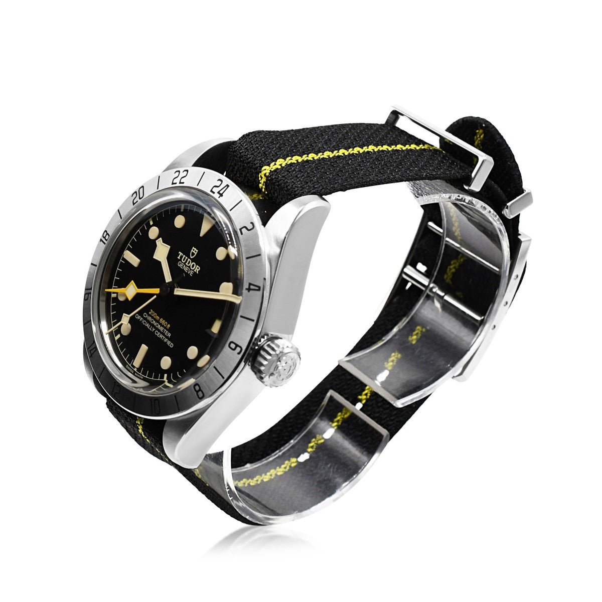 This distinguished Tudor Black Bay Pro represents the pinnacle of professional watchmaking heritage. The robust 39mm stainless steel case houses an automatic movement beneath a striking black dial, engineered for those who demand both precision and durability. The fabric strap offers refined comfort without compromising on performance.