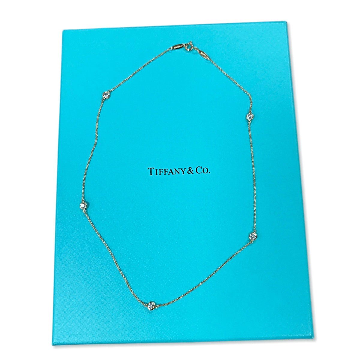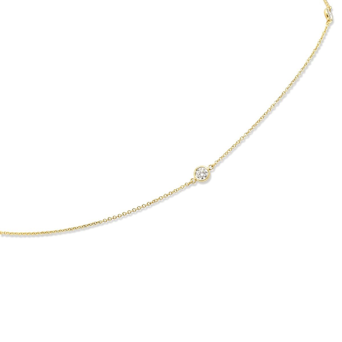 Elevate your everyday elegance with this iconic Tiffany & Co Elsa Peretti Diamonds by the Yard necklace. Crafted in lustrous 18ct yellow gold, this timeless piece features five brilliant diamonds totalling 0.70 carats, delicately spaced along a graceful 16" chain.