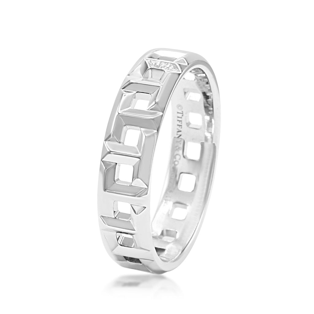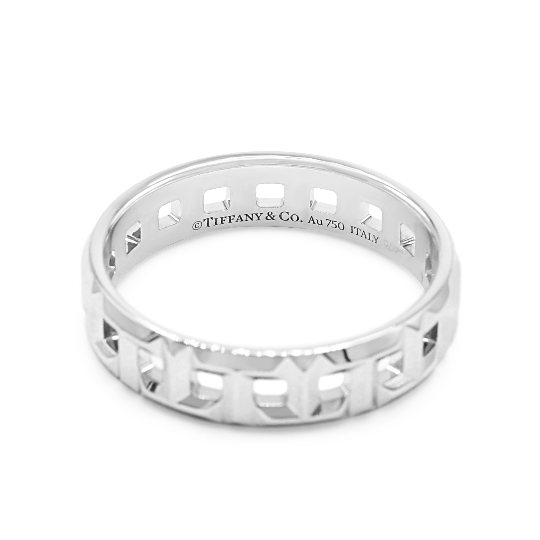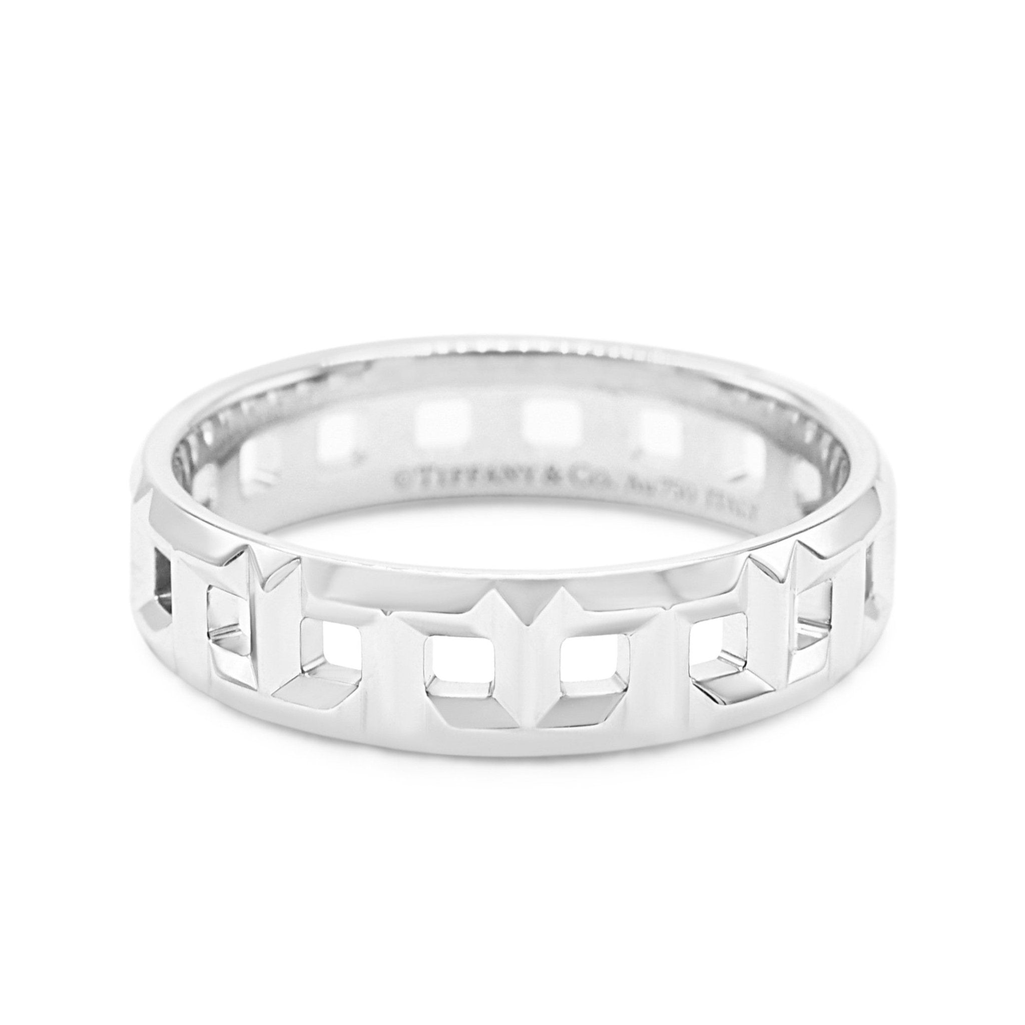 Welcome to the world of luxury and elegance with this second hand 5.5mm Tiffany T True Wide Ring. This exquisite piece is a part of the timeless T collection from the renowned brand Tiffany & Co. Designed for the modern and sophisticated woman, this used ring is a perfect balance of classic and contemporary.