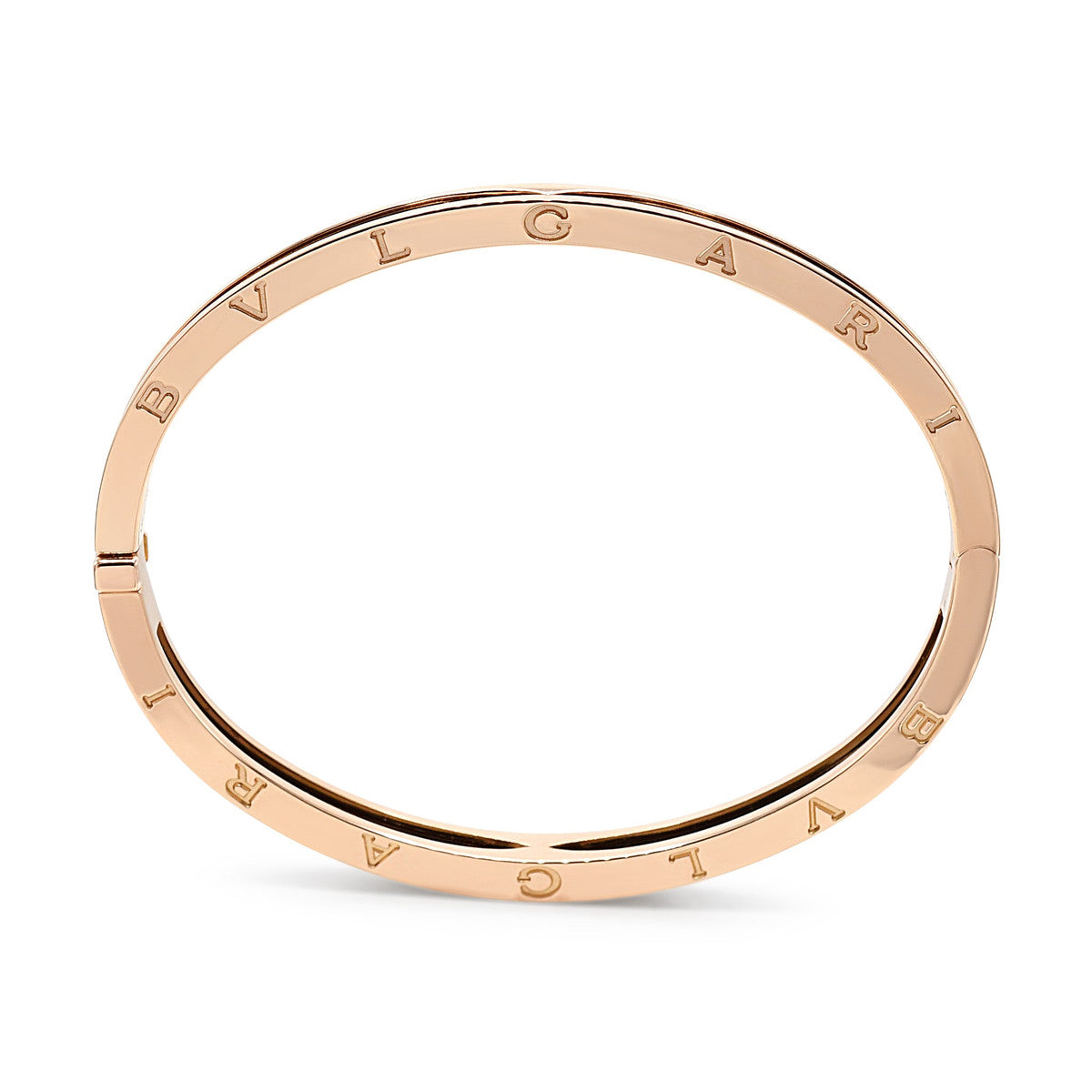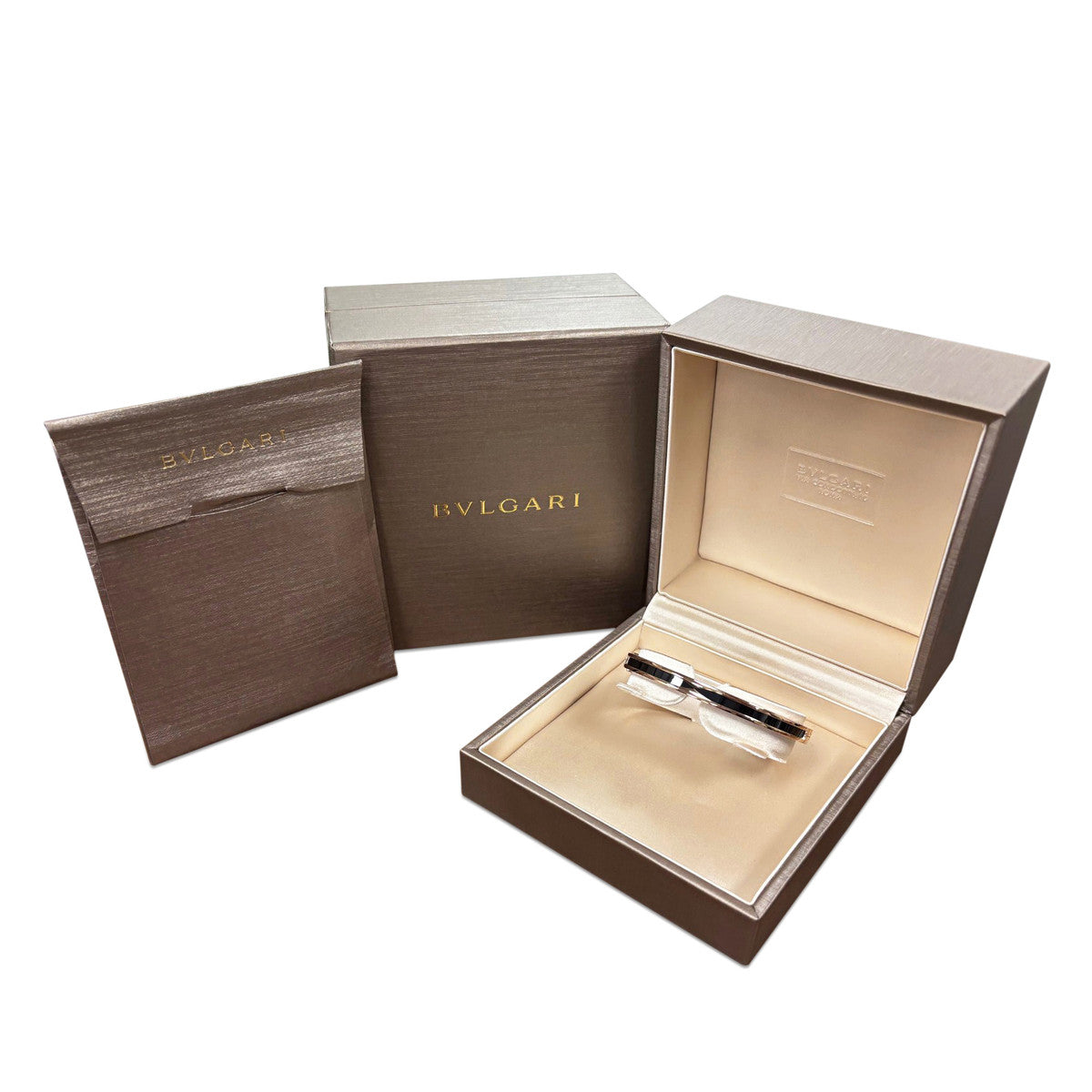 The medium size fits wrists up to 17cm, offering a refined silhouette with its 5.6mm width. Weighing 29.1g, this unisex piece combines elegance with contemporary edge. Presented with Bvlgari box and authenticity card, it's a statement accessory for those who appreciate enduring luxury and distinctive design.