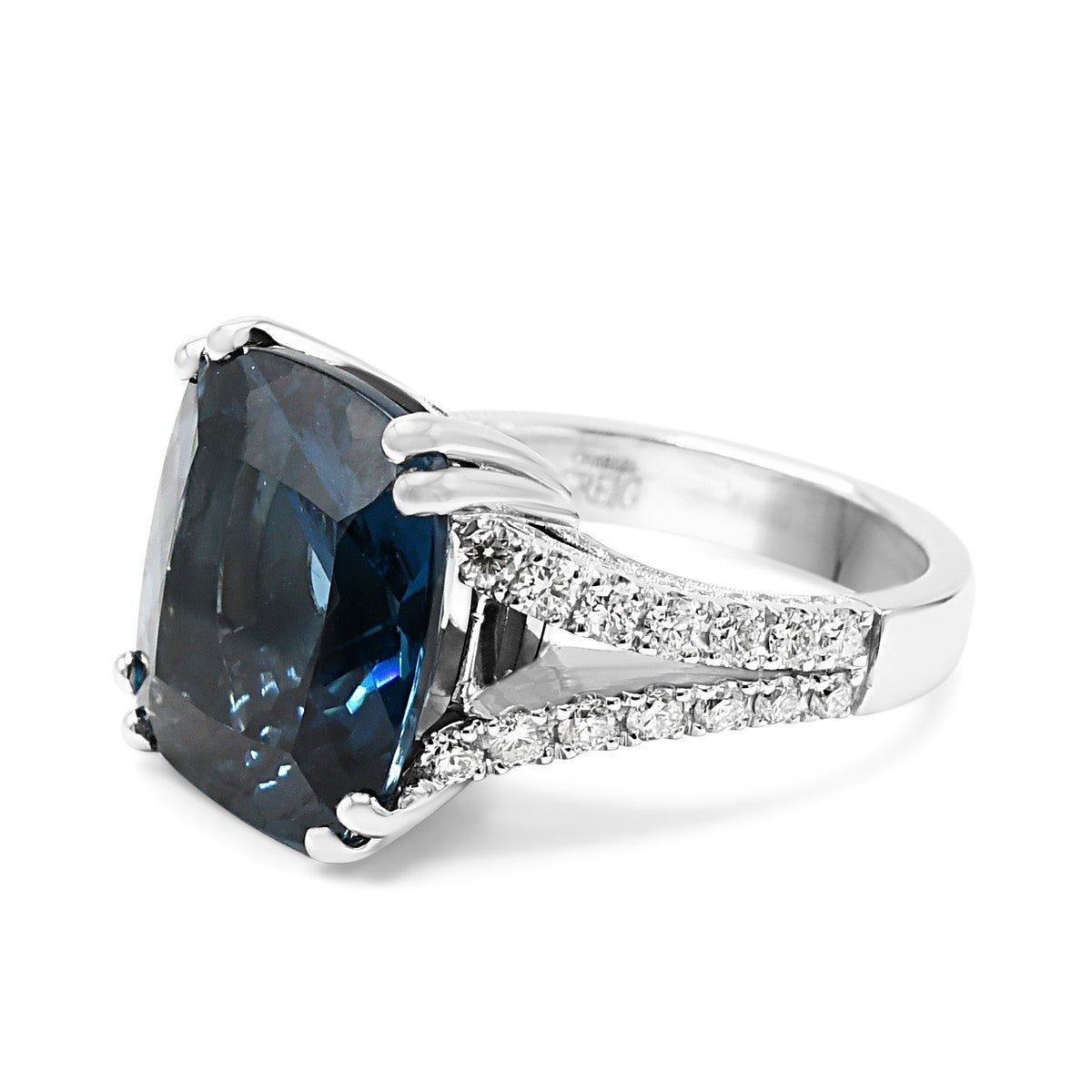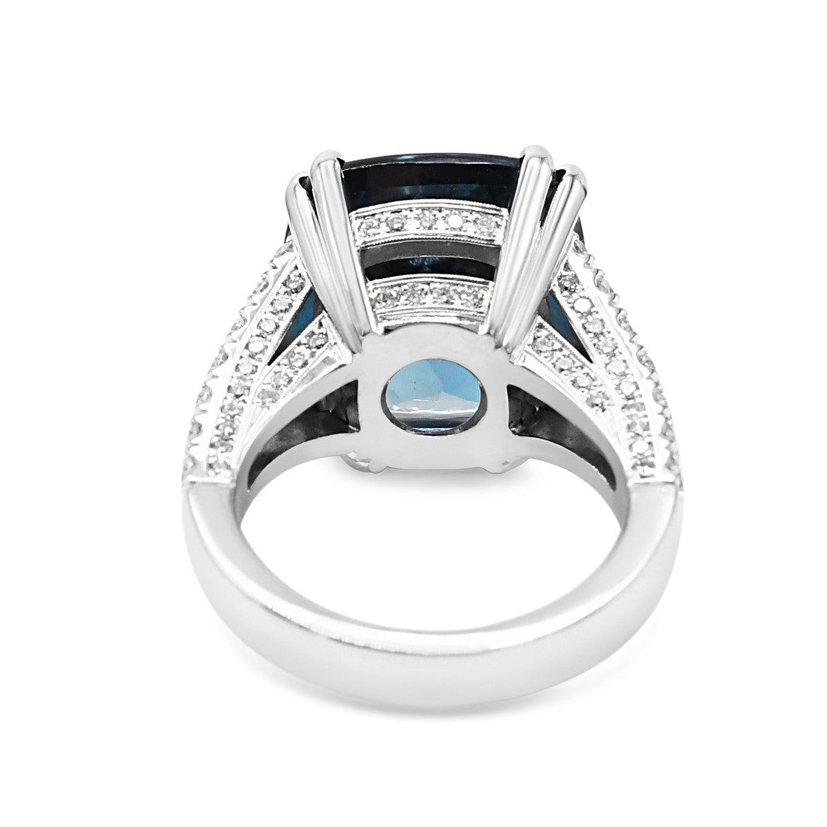 This exquisite Charles Greig ring showcases the timeless elegance of brilliant cut diamonds totalling approximately 1.8 carats, complemented by a striking blue topaz centrepiece, Blue Topaz estimated weight 15cts.