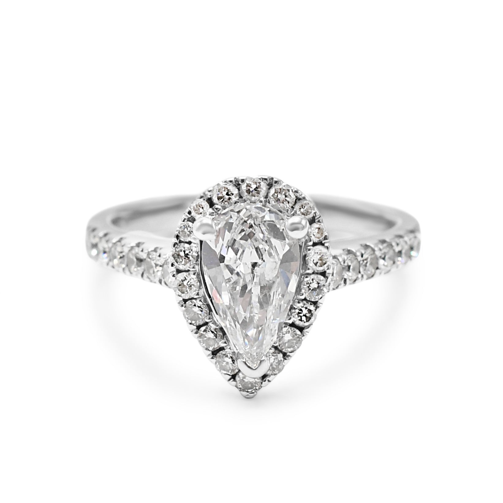 Certificated Pear Brilliant Diamond Halo Ring, Diamond Shoulders - Platinum