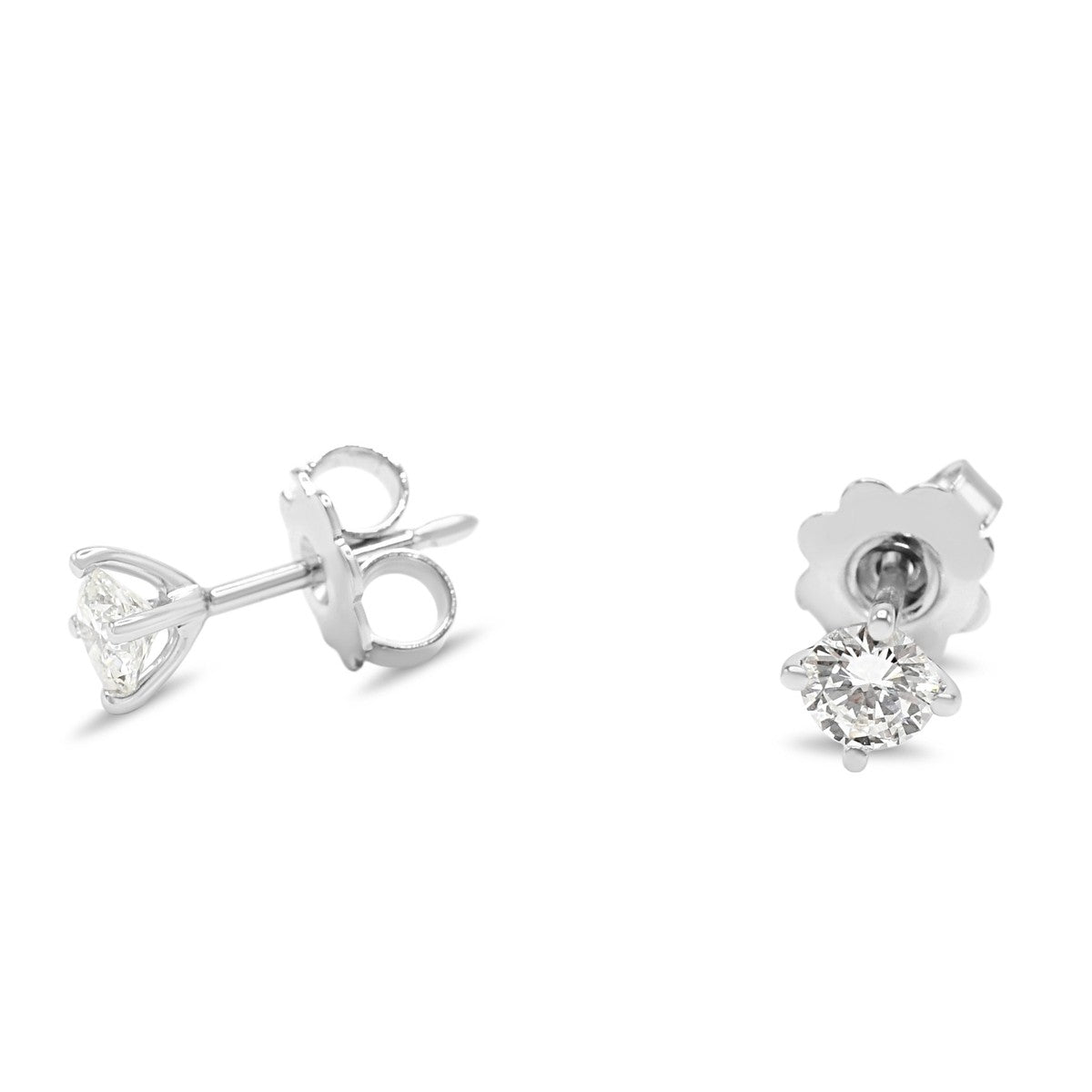 Elegant diamond stud earrings crafted in 18ct white gold, featuring two brilliant cut diamonds totalling 0.51ct. Each stone is graded D colour and VS2 clarity, offering exceptional sparkle and purity.